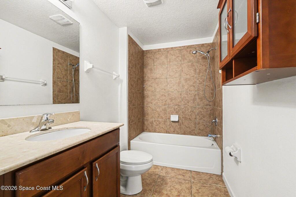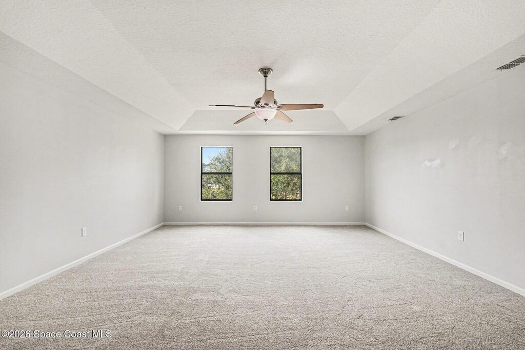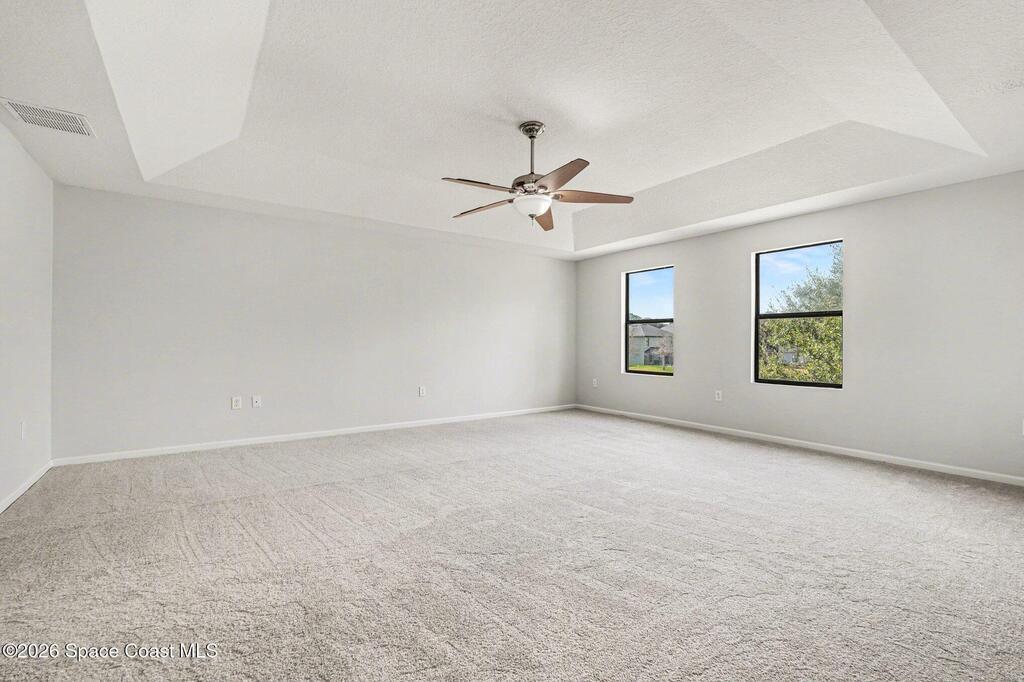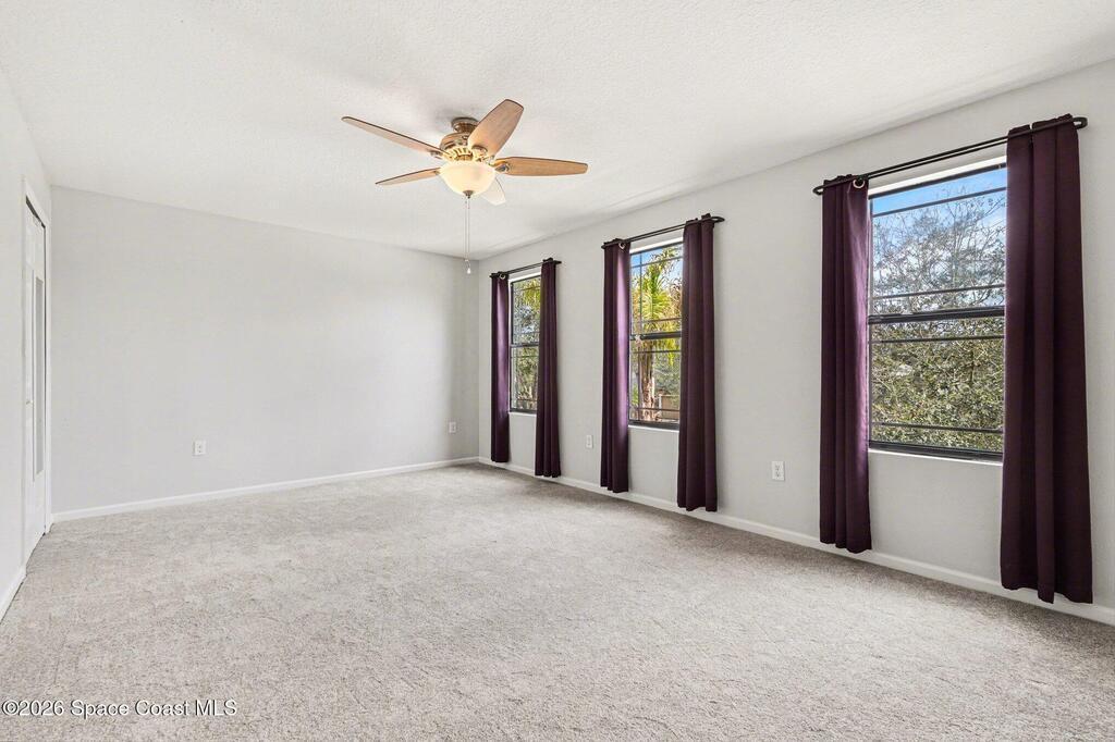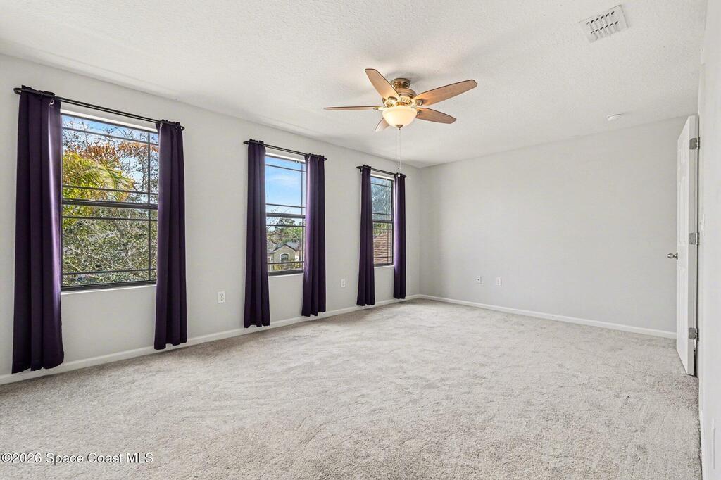 Impeccably maintained 2 story home in a gorgeous gated community. This home includes a rare downstairs bedroom next to a full bathroom with the primary suite & additional 3 bedrooms upstairs making it perfect for guests. The open kitchen with eat-in area & massive walk-in pantry include updates like an air fryer/convection oven, & a sanitizing dishwasher. This blends with the primary gathering room & the trussed porch with extended screen room overlooking the pond for tranquil days. The hardwood staircase & loft lead you to the luxurious primary suite with tray ceilings, huge walk-in closet, garden tub, walk-in shower, & dual sinks with a vanity. Storage is not a problem with a walk-in closet in another bedroom, under stair storage area, & shelving in the garage along with a storage lift. Updates include 2024 roof, 2024 & 2019 AC units (2), 2019 garage door, carpet & more! Perfectly located in the heart of West Melbourne near shopping, dining, schools, medical, the beach & more!