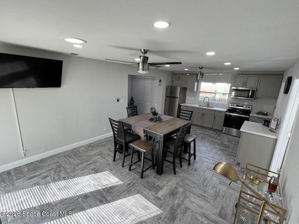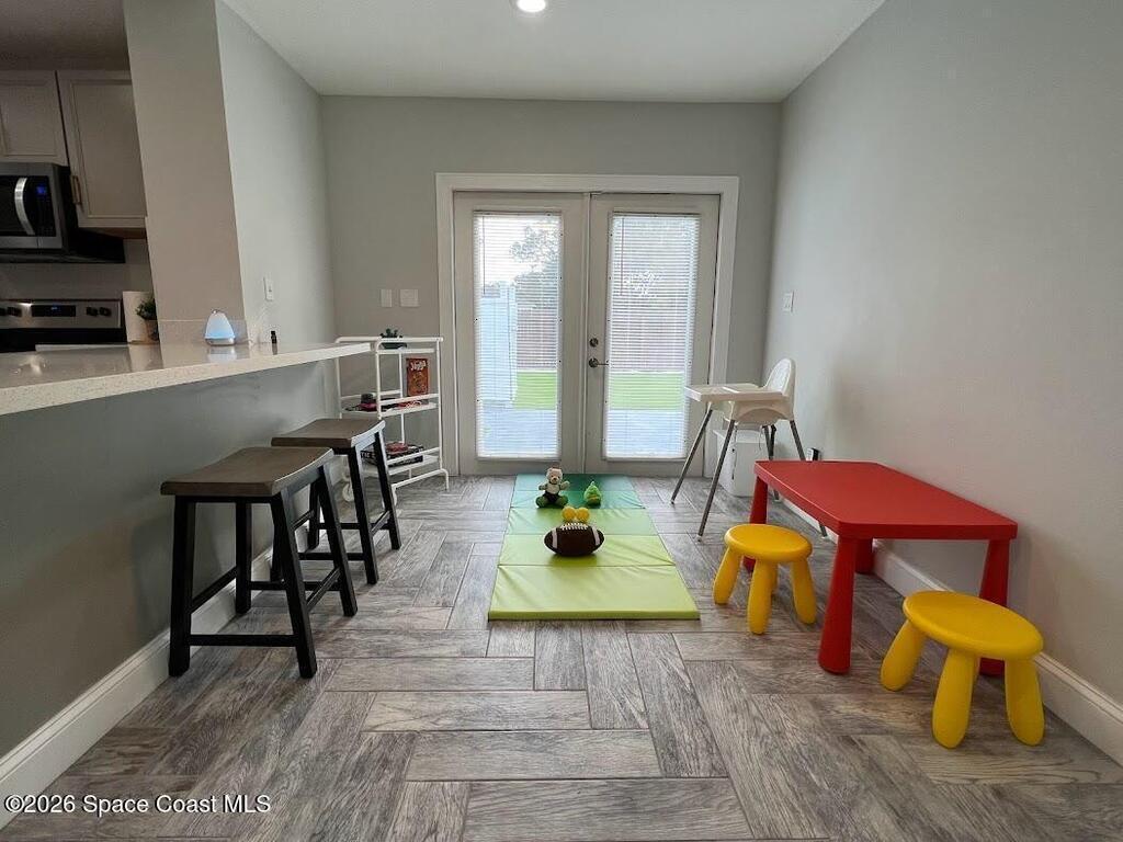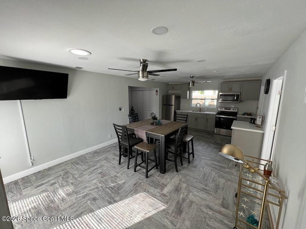 Single Family Home for rent (short term rental or long term) minimum 2 months. All utilities included. 5 minutes away from the Melbourne Downtown. Everything inside is clean, new & ready for you. This home is located 5 minutes away from the Melbourne Airport, 5 minutes from Holmes Regional Medical Center, 8 minutes from Indialantic Beach and Canova Beach. The Patio, with new turf, is the best. You can play Soccer, Volleyball, Pickleball, Cornhole and after you can take an outside shower. VERY CLEAN PLACE. The house has 4 bedrooms and is described as Space Room, Mickey Mouse Room, Harry Potter Room and Star Wars Room, all with Galaxy sky light projector, charging station and TV with HDMI wires to connect any device.