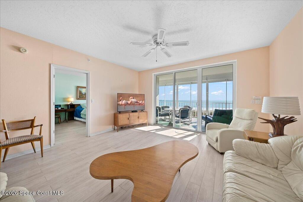 Situated on the top floor, this gated oceanfront condo offers the kind of breathtaking views people dream about, all while offering the privacy of a secure, controlled-access lobby. Take in endless blue waters, stunning sunrises while sipping your morning coffee, and front row seats to our spectacular launches. Inside, the home is filled with natural light to create a coastal vibe. The open-concept layout features split bedrooms for added privacy and includes the rare convenience of an oversized private garage. Residents enjoy an exceptional collection of amenities designed for both relaxation and recreation. Spend your days lounging by the heated pool/spa, walking to our beautiful beach or take in a game of pickleball. Ideally located just minutes from the renowned Port Canaveral waterfront dining scene and only a 45-minute drive to Orlando International Airport, along with world-class theme and water parks.
