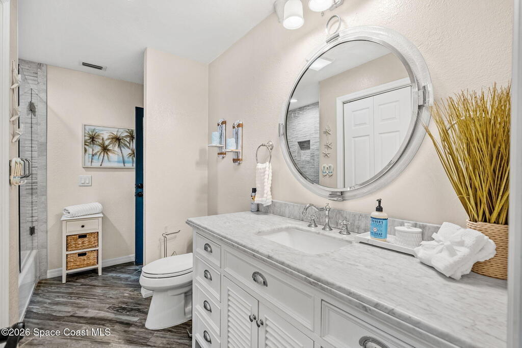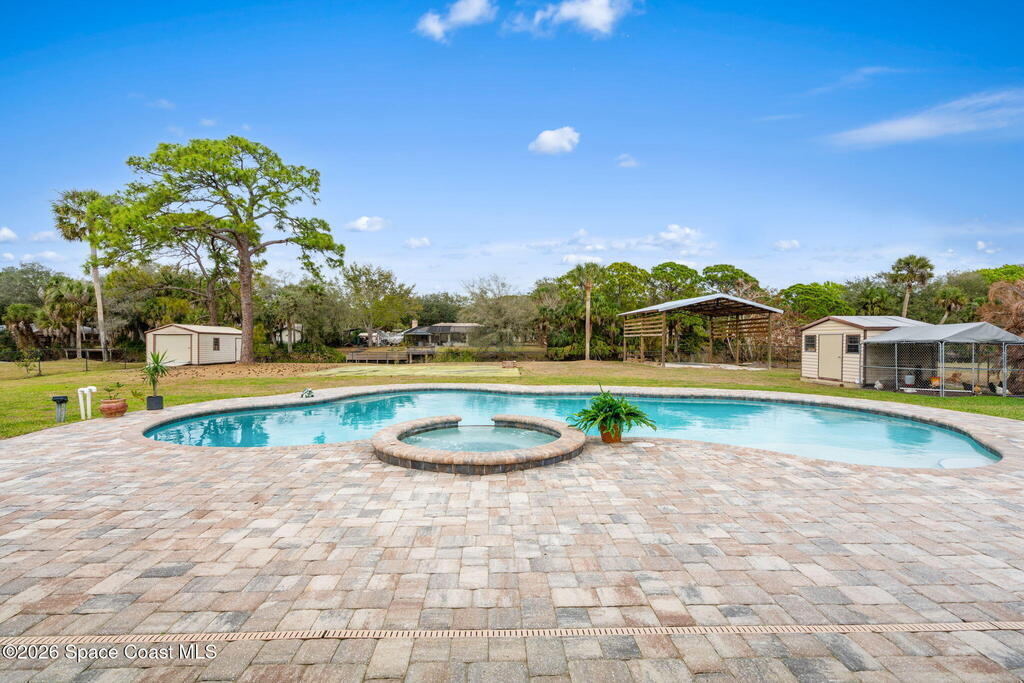 Direct canal access to the St. Johns River and Lake Washington sets the tone for this unapologetically bold 1.03-acre property--no HOA, no limits, just freedom. A saltwater pool and hot tub anchor the backyard escape, while a wood-burning fireplace, granite countertops, built-in coffee bar, crown molding, and tile throughout elevate the interior. A secret room adds intrigue, and the pole barn, chicken coop, and brand-new shed with electric expand the possibilities. Built for action with a 2025 airboat ramp, 2024 electric gate system, storm shutters, whole-house generator outlet, new appliances with transferable warranty, new garage door opener, fresh landscaping, plus updated pool and sprinkler pumps (2023) and a new hot tub heater (2025)--this is waterfront living with edge, attitude, and room to breathe.