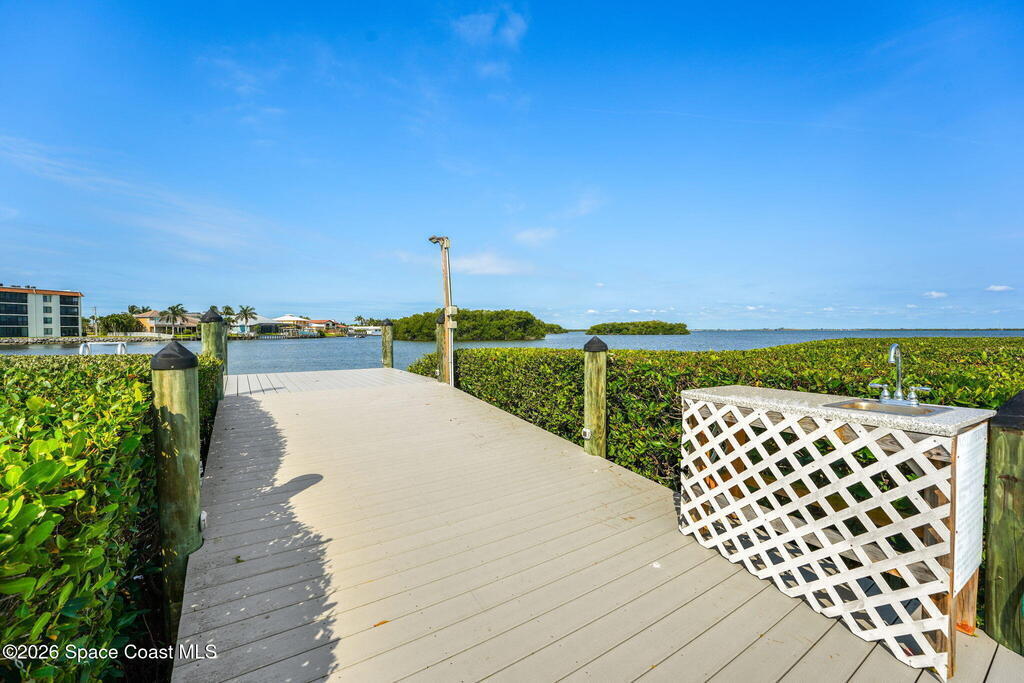 This 3rd floor Riverfront condo is located within Fountain Cove a very well cared for community with a large pool, fishing dock, club house, and tennis court. This condo also has a private single car garage, a washer and dryer and a water filtration system. Located centrally in Cocoa Beach with beach access just across the street and shopping and dining options within minutes. This open floor plan updated condo has new appliances, countertops, and a private screened in balcony with ceiling fan to enjoy outdoor living with water views. Easy bike ride to downtown and close proximity to KSC, Blue Origin, SpaceX and Port Canaveral.
