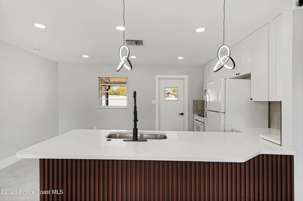 Beautifully remodeled 3BR/2BA concrete block home offering the perfect blend of comfort, style, and functionality. Major improvements feature a New Kitchen, New Bathrooms and ceramic title throughout. 2019 Roof. Connected to city water and city sewer, this move-in-ready property is ideally located in a highly desirable area. Walking distance to Eastern Florida State College, the King Center, and Restaurantes. Plus, enjoy the Florida lifestyle with abundant nearby shopping and dining options, the beaches are just 15 minutes away and approximately 1 hour from Orlando.