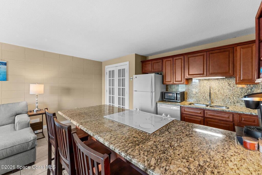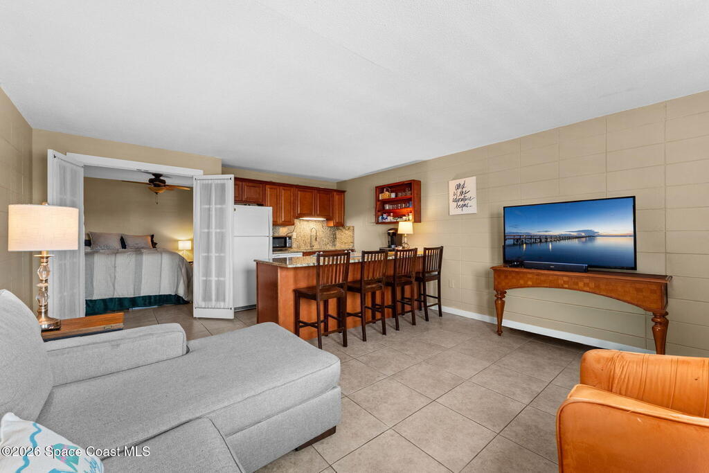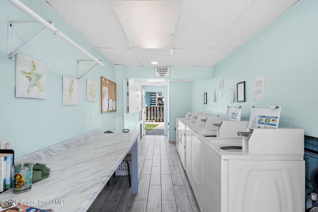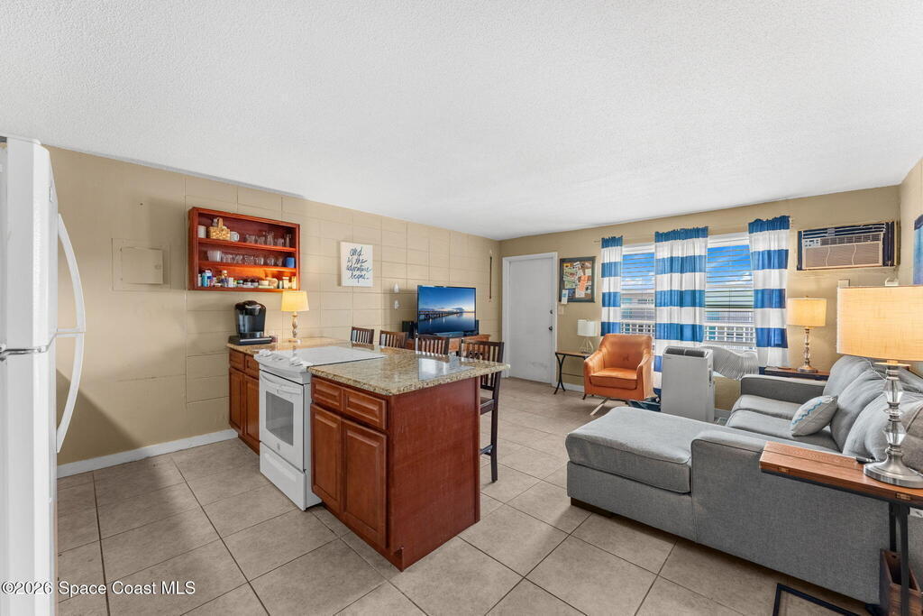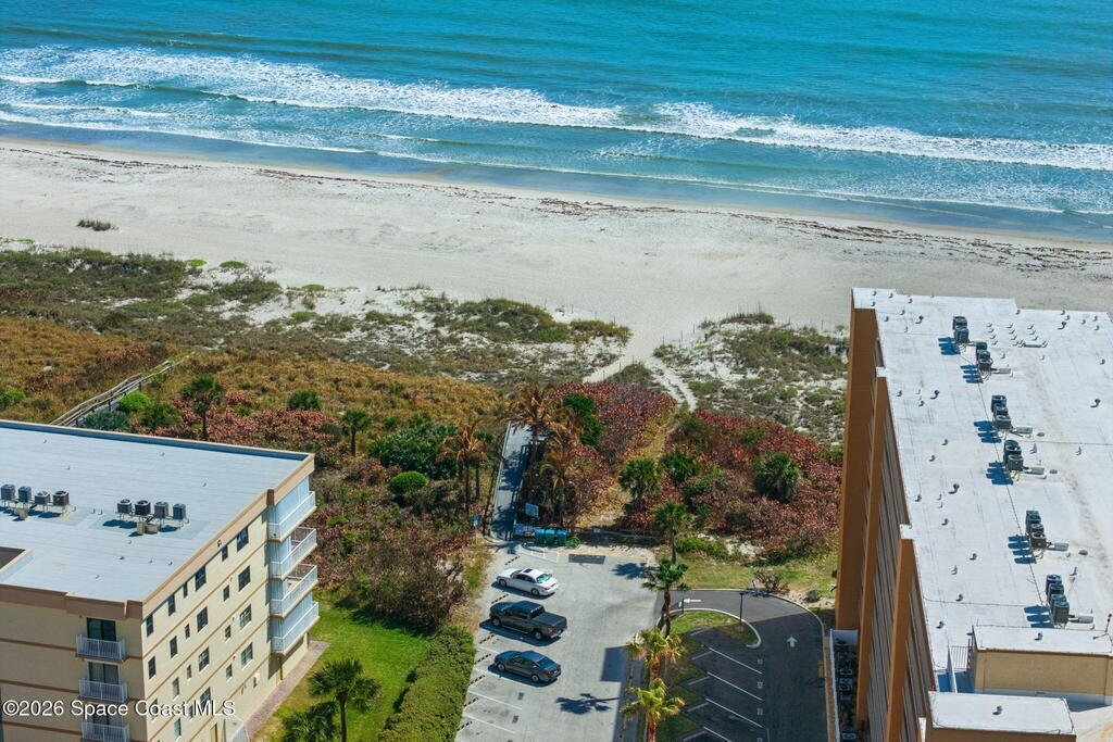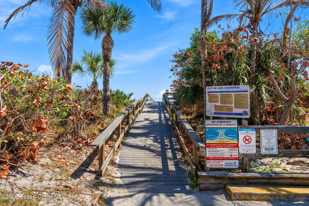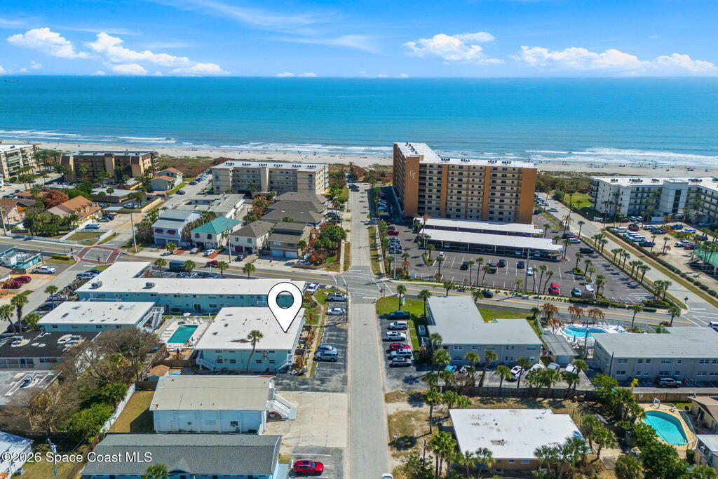 Being THIS close to the beach is RARE-- especially at this price.Move-in ready condo tucked away on a quiet side street less than a block from peaceful, uncrowded beaches--yet just minutes from the dining, entertainment, and waterfront energy of Cocoa Beach and Port Canaveral. Inside, you'll find an open layout with no carpet, granite countertops and backsplash, a kitchen island with seating for four, newer white appliances, and warm wood cabinetry. 2019 windows bring in natural light while adding efficiency. The bathroom is tastefully updated with a beautifully tiled shower. The well-maintained community offers a large pool, on-site laundry, and dedicated bike storage, making beach living easy and effortless. Whether you're searching for a primary residence, weekend escape, or investment property, this one checks all the boxes.