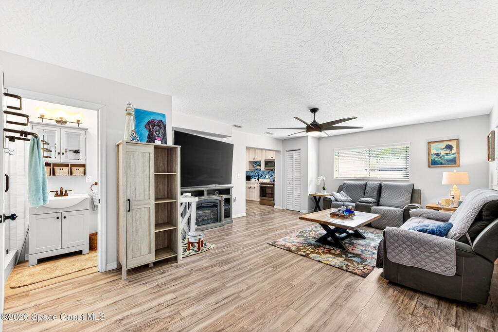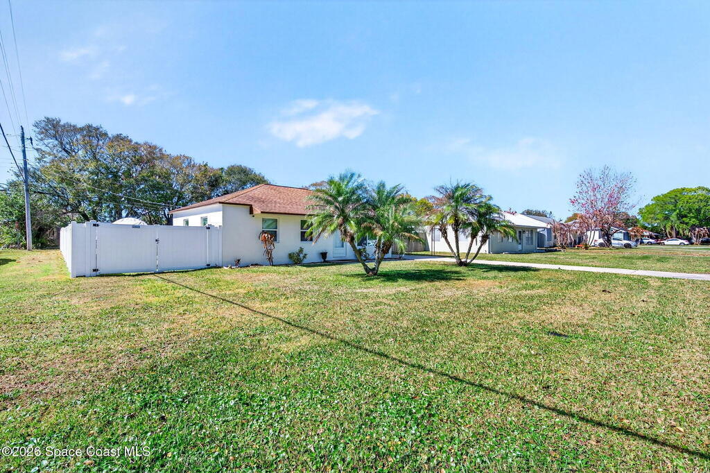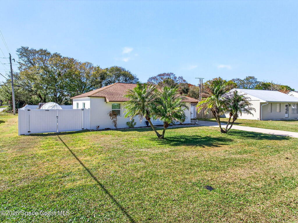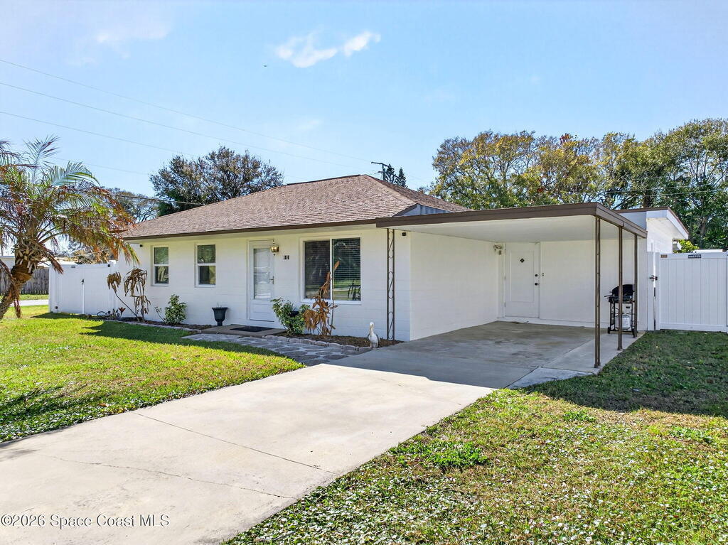 This beautiful corner-lot home in Central Melbourne recently had a complete makeover inside! The corner lot allows plenty of space in your privacy-fenced back yard (w/2 double entry gates) for your boats, RV, dogs & more. Get ready to relax on the back porch in the Hot Tub while you watch TV. The 2021 John Deere mower also conveys! Great location near shopping and dining, the Melbourne International Airport, Golf, minutes to the Beach and more. The open floorplan home has 3 bedrooms, 2 baths, a laundry room off of the kitchen, dining room and an eat-in kitchen. Beautiful bathrooms w/glass doors. The kitchen is roomy with a lot of storage, an eat-in bar and a coffee bar. New impact windows, washer and dryer convey, the extra refrigerator in the laundry room conveys too! There's room for your tools in the 6x10 shed in the back yard. All new vinyl floors, new knock-down ceiling throughout the home.The home has been well maintained and has only had 2 owners! Read more.....