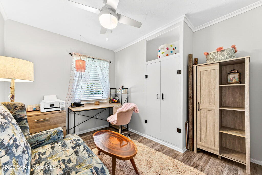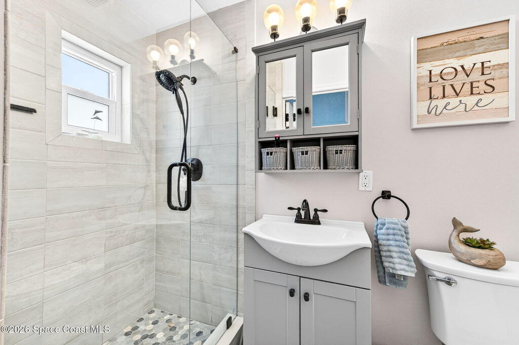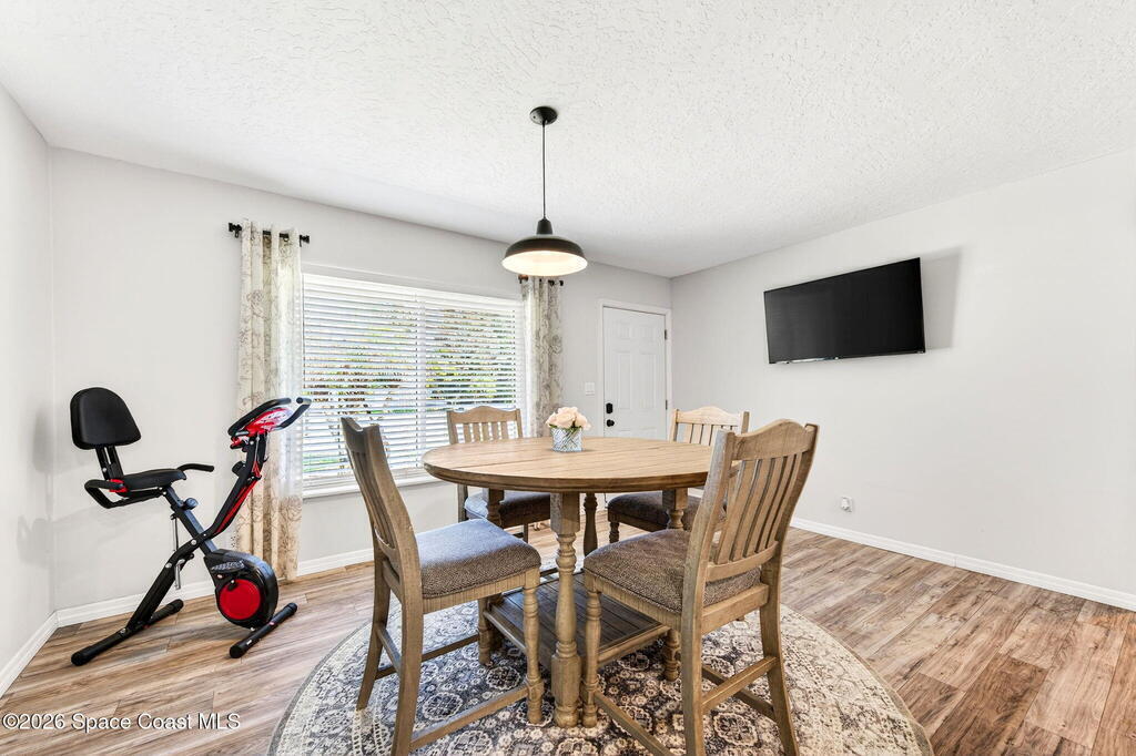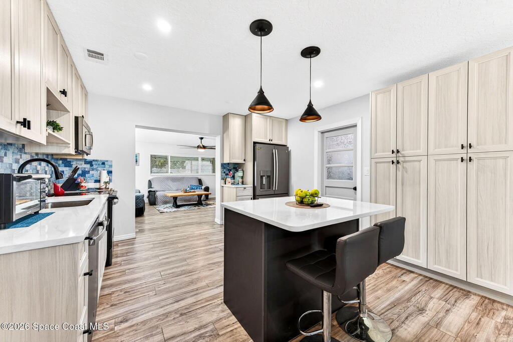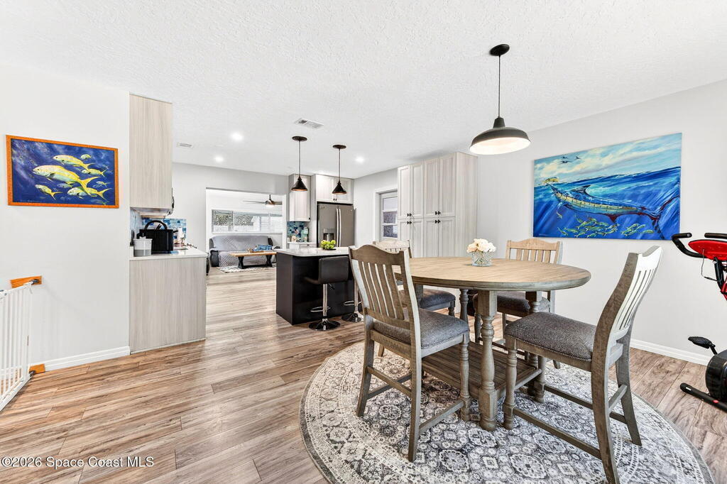This beautiful corner-lot home in Central Melbourne recently had a complete makeover inside! The corner lot allows plenty of space in your privacy-fenced back yard (w/2 double entry gates) for your boats, RV, dogs & more. Get ready to relax on the back porch in the Hot Tub while you watch TV. The 2021 John Deere mower also conveys! Great location near shopping and dining, the Melbourne International Airport, Golf, minutes to the Beach and more. The open floorplan home has 3 bedrooms, 2 baths, a laundry room off of the kitchen, dining room and an eat-in kitchen. Beautiful bathrooms w/glass doors. The kitchen is roomy with a lot of storage, an eat-in bar and a coffee bar. New impact windows, washer and dryer convey, the extra refrigerator in the laundry room conveys too! There's room for your tools in the 6x10 shed in the back yard. All new vinyl floors, new knock-down ceiling throughout the home.The home has been well maintained and has only had 2 owners! Read more.....