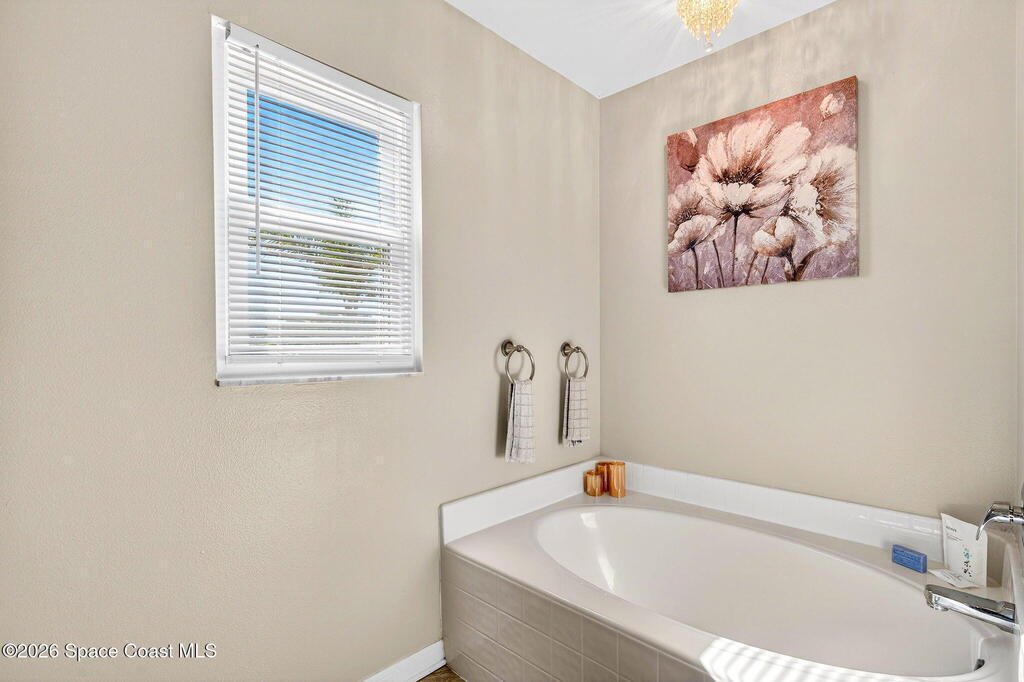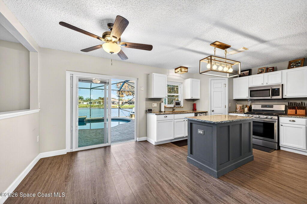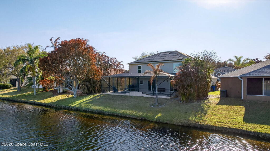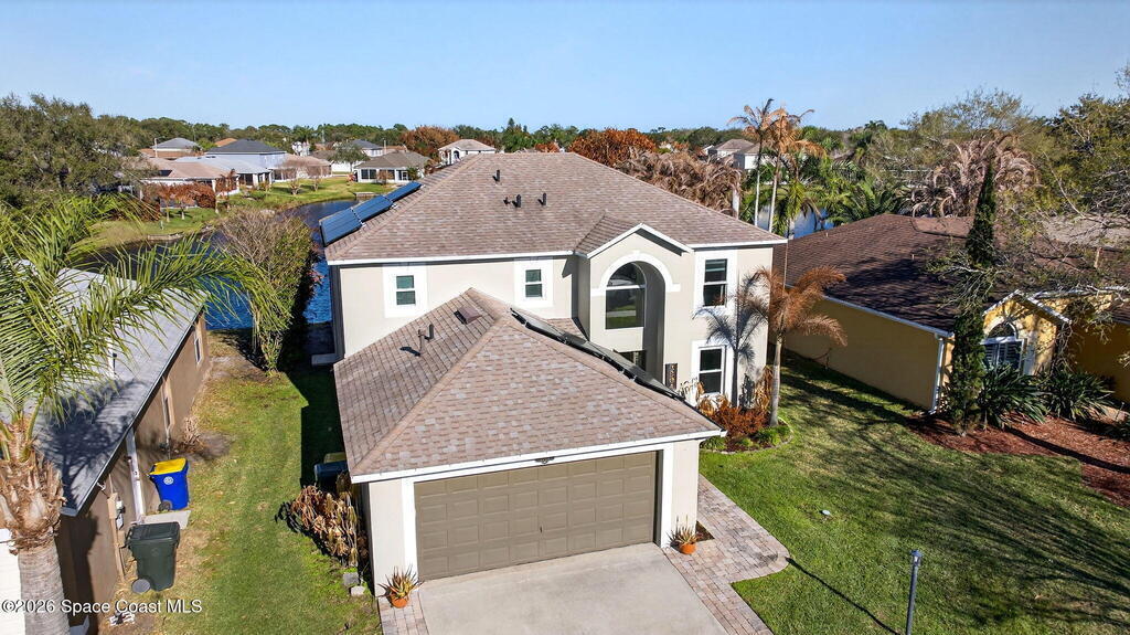 Lakefront Paradise with Pool in Ashwood Lake Community ! This impressive 4-bedroom, with a bonus room & 3-bathroom home features over 2250 square feet of living space in the Viera/Rockledge area, complete with a 2-car garage and screened patio, totaling over 2700 square feet. The entrance foyer boasts high ceilings, leading to spacious separate living and family rooms. The island kitchen seamlessly connects to the family room and screened back porch, overlooking the serene lake. Key features includes PAID SOLAR PANELS worth $47, 000, ( IMPACT WINDOWS, a recently installed SALT WATER POOL at 2022 , 2019 ROOF, newer fresh exterior painting, 2021 WATER HEATER& TESLA charger in garage. The master suite offers a relaxing garden tub and separate shower. Ideally situated near beaches, Cape Canaveral, and Melbourne, within 5 minutes of The Avenues shopping, and under an hour from two international airports and Orlando attractions. This extraordinary property will sell quickly, don't miss out