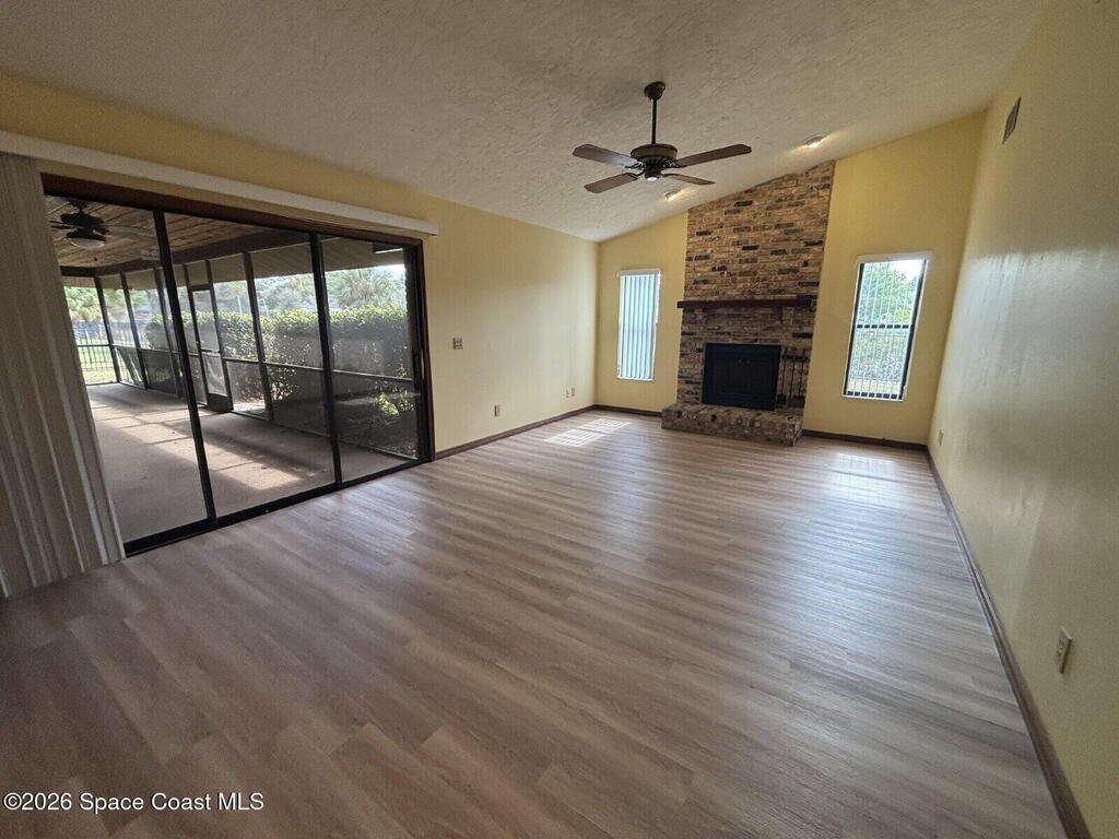 this spacious 4-bedroom, 3-bath estate residence featuring a desirable split floor plan designed for both privacy and functionality. Two bedrooms are thoughtfully positioned at the front of the home, with two additional bedrooms tucked away in the rear--perfect for guests, family, or a home office setup. The home offers both a formal living room and a comfortable family room, highlighted by a wood-burning fireplace that adds warmth and character. New laminate flooring enhances the main living areas, creating a fresh and modern feel throughout.The large kitchen provides ample space for cooking and entertaining, while the oversized laundry room adds everyday convenience. Enjoy indoor-outdoor living with a fully fenced backyard and a large screened-in porch, accessible from both the master suite and living areas--ideal for relaxing or hosting gatherings year-round.Additional features include a two-car garage and generous storage throughout.