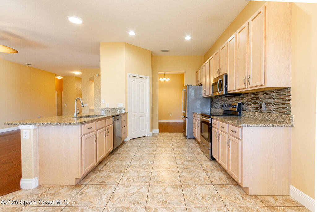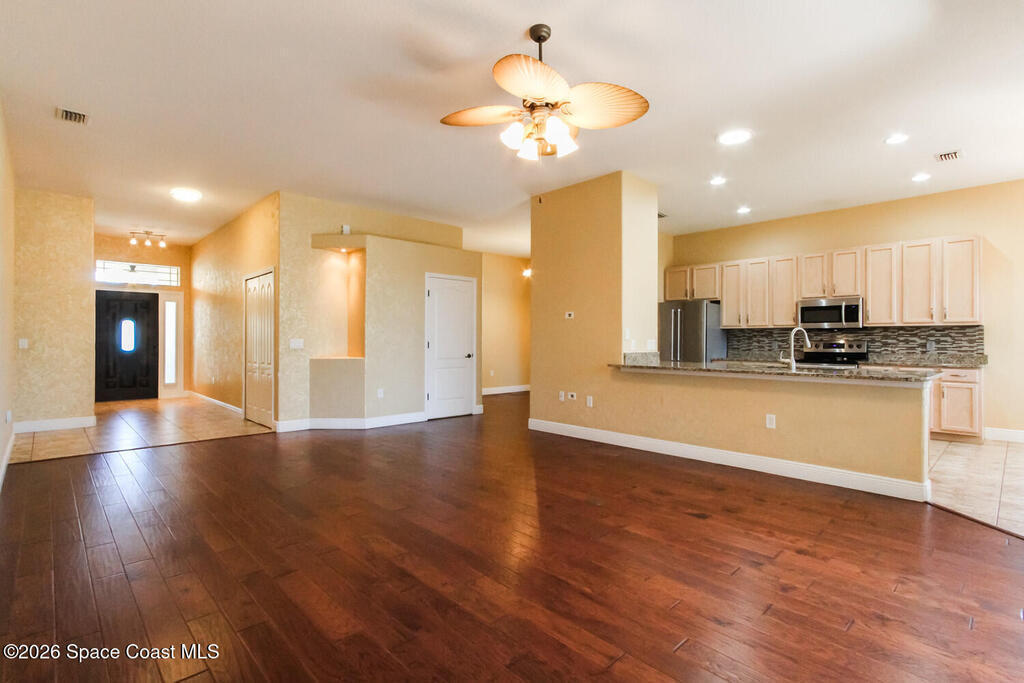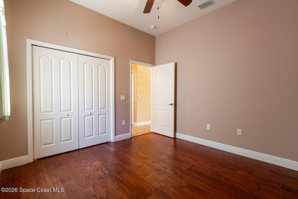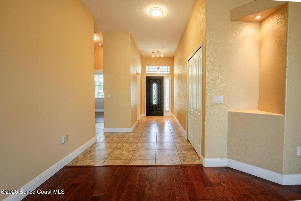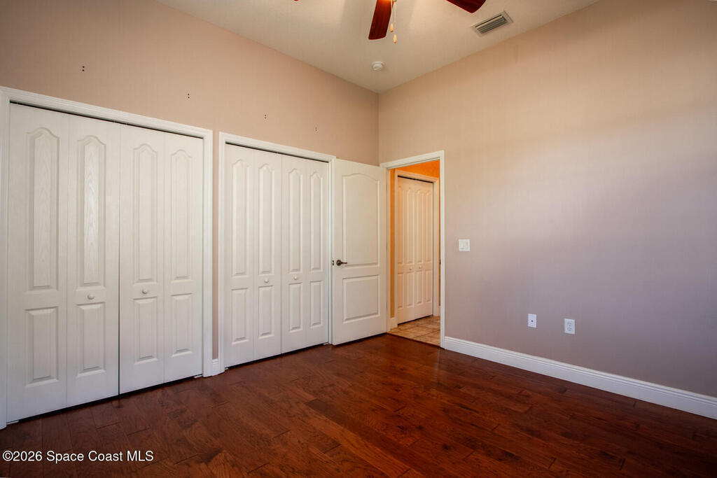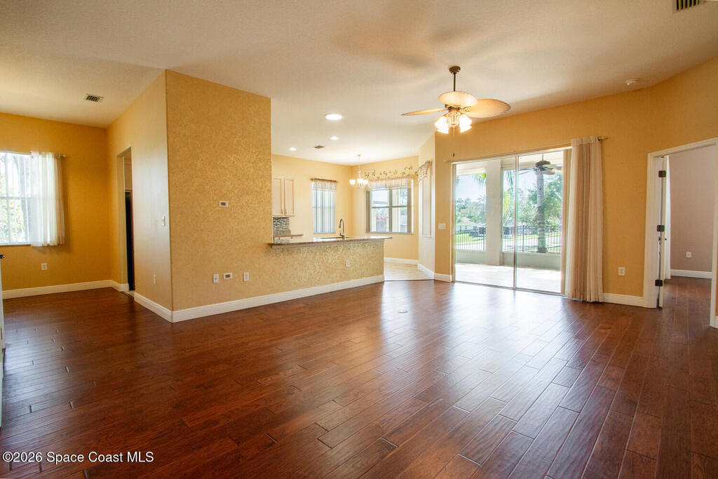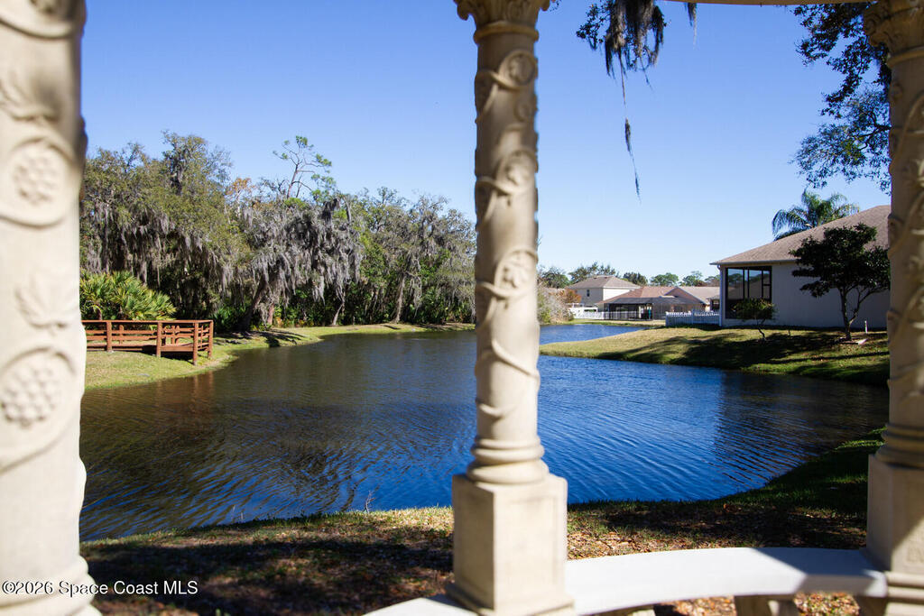 Beautifully upgraded 3BR/2BA home with 1, 725 living sq ft (2, 500 total) on a premium corner lot in Sisson Meadows. Light and bright open floor plan with real scraped wood flooring throughout and tile in wet areas. Eat-in kitchen features real wood cabinets, granite countertops, stainless appliances, and water views. Kitchen opens to spacious great room with sliders to tiled, screened lanai overlooking large pond and bridge. Owner's suite offers lanai access, walk-in closet, tiled shower, and double vanity. Split bedroom plan. For added security there are storm shutters for every window and door and a whole house 22 KW Generac generator, (Installed 2021) Conveniently located near shopping, the Kennedy Space Center, Interstate 95, State Road 528, the Indian River, and area beaches.