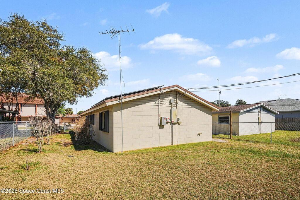 Move-in ready and packed with upgrades! This well-maintained home features 2022 solar panels that the buyer will own outright, a durable metal roof, updated electrical panel, and accordion shutters for peace of mind. The updated kitchen includes a pantry, plenty of cabinets, and opens to a separate family room and dining room, ideal for everyday living and entertaining. Flooring includes carpet and tile, with an updated guest shower featuring a tile-look insert. The primary bedroom offers his-and-hers closets for added storage. Outside, enjoy a 12x20 drive-in steel garage with electric--perfect for hobbies or extra storage. As a bonus this house is set up to be generator ready for extra comfort during a storm. Conveniently located close to shopping, dining, the intracoastal, and the beaches. Numerous updates throughout the years make this home truly turnkey!