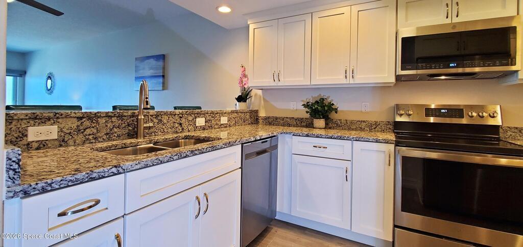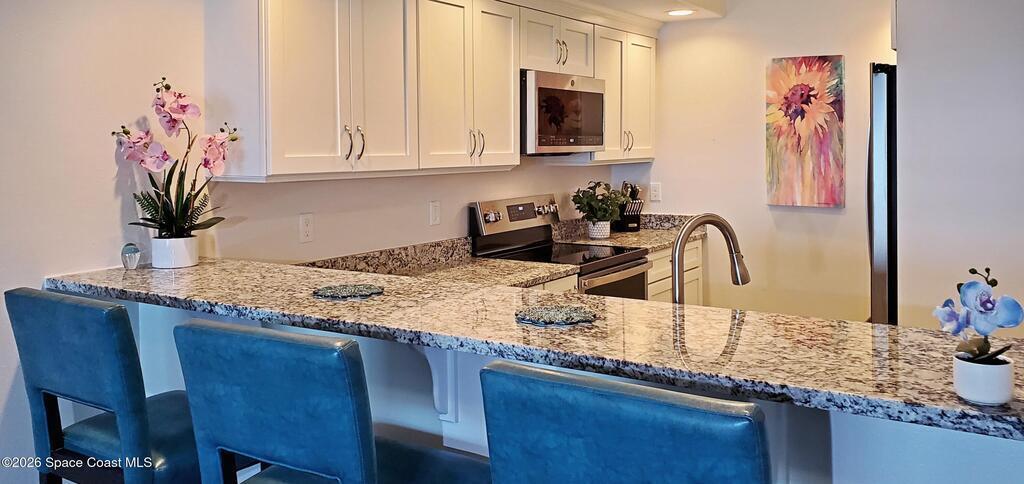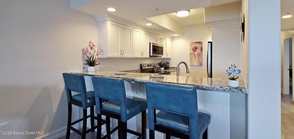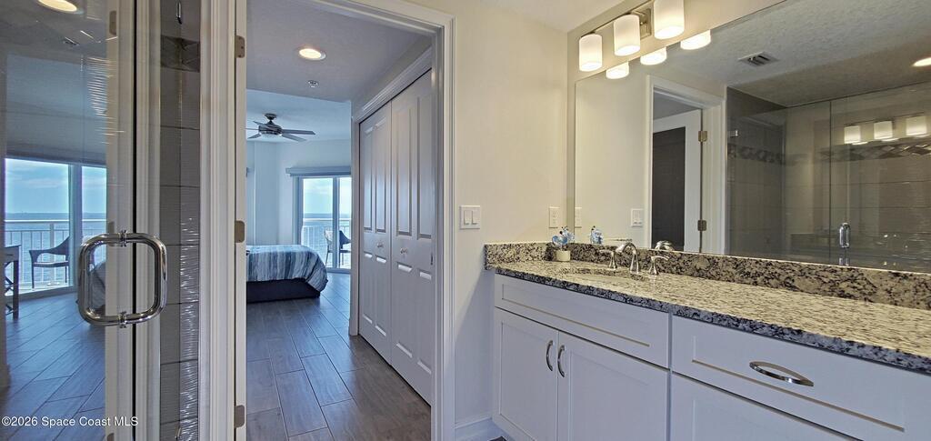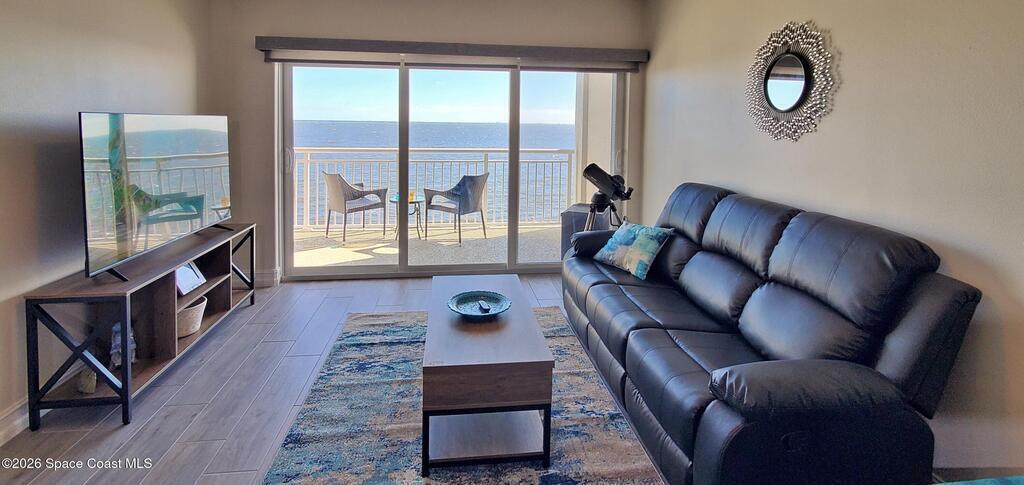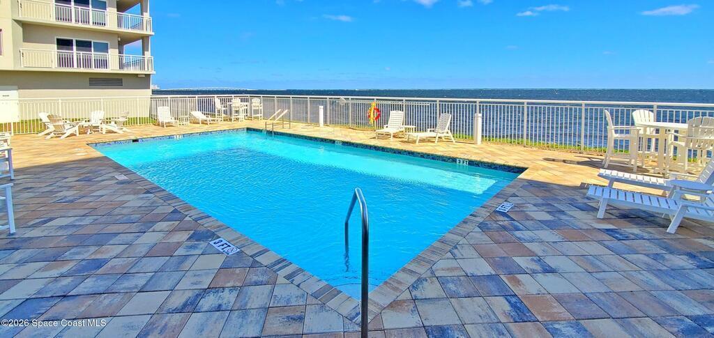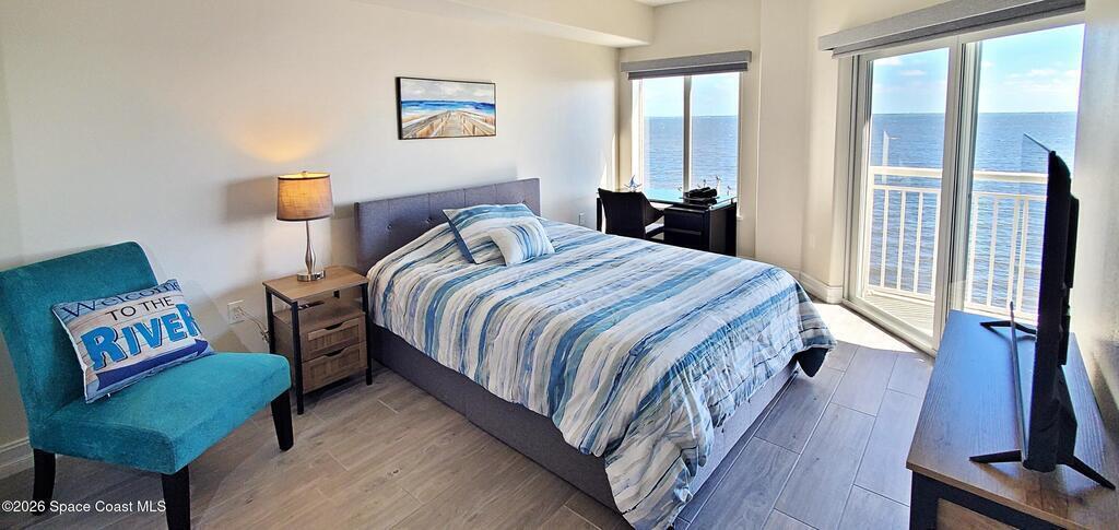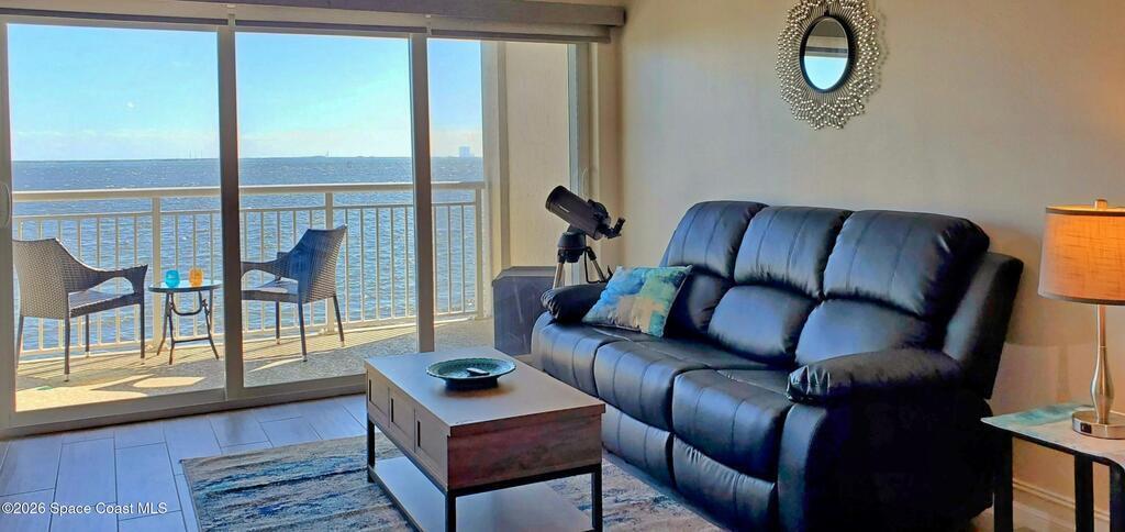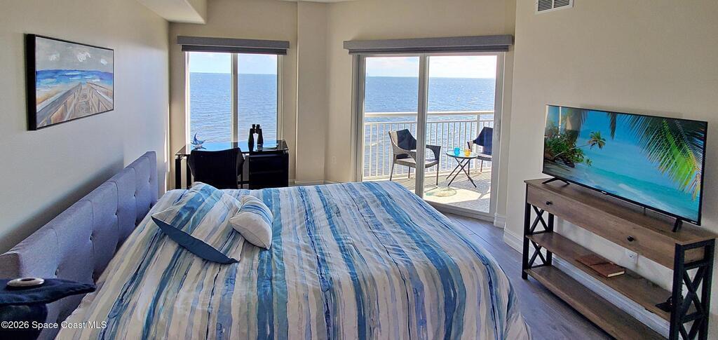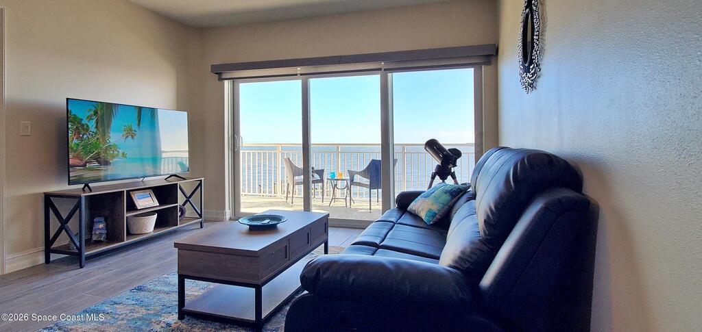 Best 3 Bedroom Value in River Palms Riverfront Luxury Condominium built in 2023. Guaranteed assumable lease INCOME until July 2026. Enjoy unforgettable sunrises, dolphins, manatees, and wildlife from your private waterfront balcony. VIP Seats to all to all Space coast Rocket launches. Community heated salt water pool, club house, fitness room, and secured lobby entrance with 2 elevators. Dedicated parking spot in covered parking garage with ample parking outside. Unit features: remote custom blinds, granite countertops, driftwood style plank tile flooring throughout, in unit laundry room, and more. Association Fee includes cable TV, internet, water/sewer/trash, and pest control. Pets allowed under 30 pounds. No smoking. No grills. Close to beaches, shopping, restaurants and major highways.