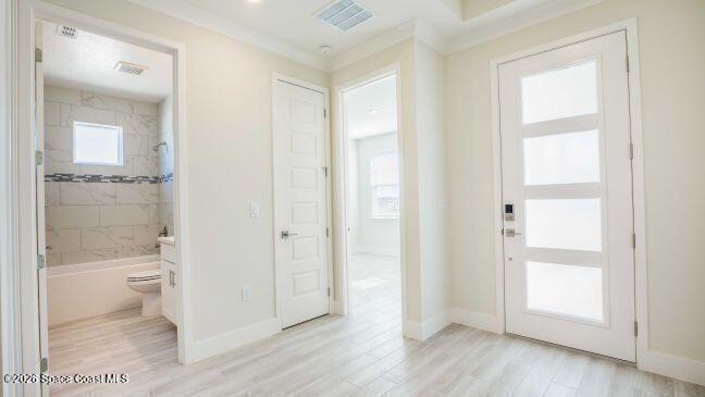 Under Construction. Presenting the exquisite Atlantis model, ideally positioned just 800 feet from Hightower Beach within the gated, beachside community of The Vue at Satellite Beach. With only 72 residences, this intimate enclave captures the essence of refined coastal living along Satellite Beach and the renowned Space Coast, complete with private pool and beach access reserved exclusively for residents.Striking curb appeal sets the tone, highlighted by an upgraded metal roof, paver driveway and lead walk, impact glass windows, classic coastal shutters, and an impressive 8' full-lite glass front door. Inside, soaring 9'4'' ceilings, elegant crown molding, and a beautifully detailed tray ceiling create an immediate sense of architectural distinction, while plank porcelain tile flooring flows through the main living areas and plush upgraded carpet with premium padding adds comfort in the bedrooms. Additional flush-mount LED lighting enhances the great room, creating a warm,