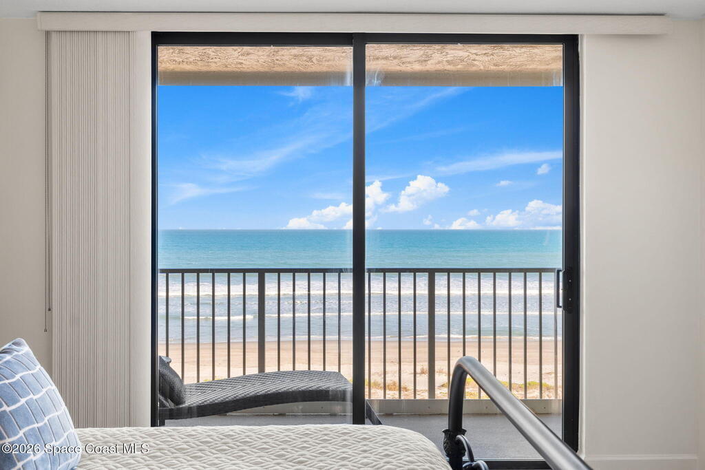 The Atlantic is your backyard in this direct oceanfront condo where wide, uncrowded beaches meet shimmering river sunsets from a vantage point high enough to savor both. Impeccably maintained & finished with wood-plank tile throughout, the interiors feel crisp & cohesive, elevated by pocket lighting, plantation shutters & automated blinds. Four-panel, floor-to-ceiling impact-rated sliders flood the living space with light & open to an extra-wide balcony designed for lingering mornings & golden-hour evenings, with additional shutters for peace of mind. The kitchen is a standout, outfitted with soft-close dovetailed cabinetry, roll-out trays & a full suite of Bosch stainless steel appliances including a convection oven, while the laundry room adds function with a utility sink.