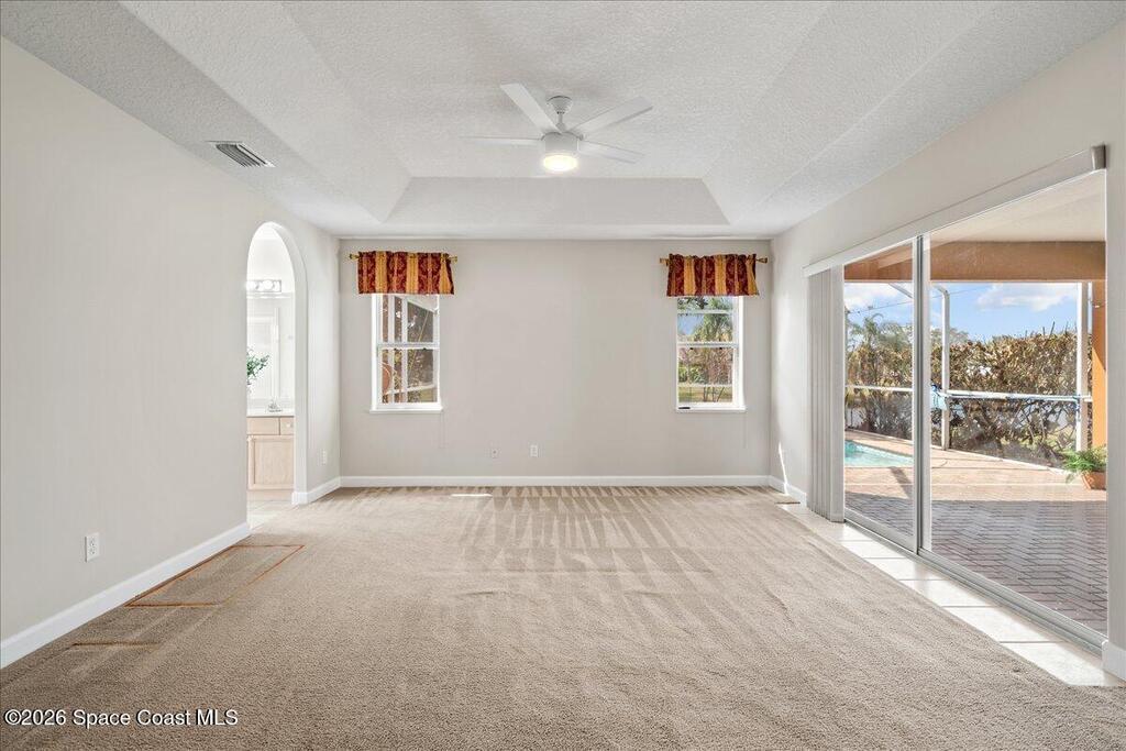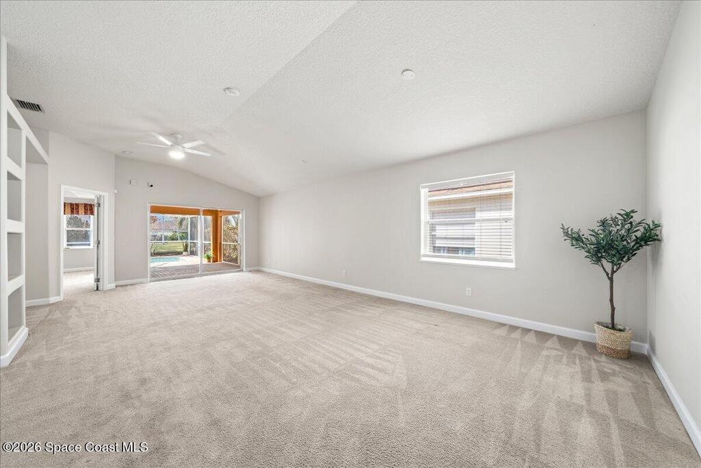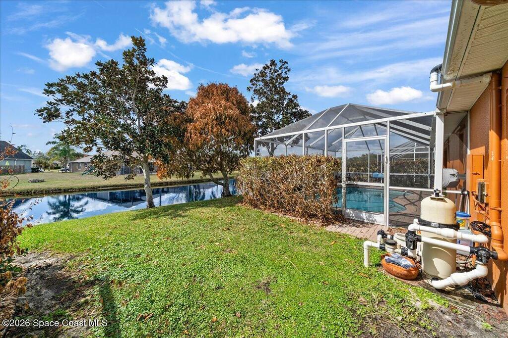 Located on a lake in the heart of Viera, this 5-bedroom, 3-bath home offers the perfect blend of comfort and convenience. The desirable split floor plan provides privacy and flexibility, and all bedrooms feature walk-in closets. The huge primary suite includes a sitting area, creating a relaxing private retreat. Enjoy Florida living at its finest with a saltwater pool and screened lanai overlooking the water--perfect for entertaining or unwinding. Freshly painted inside and out, the home feels crisp and move-in ready. With low HOA fees, top-rated schools, and close proximity to restaurants, shopping, and easy highway access, this home offers the best of the Viera lifestyle.