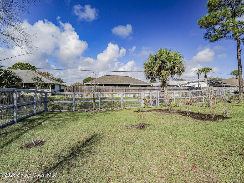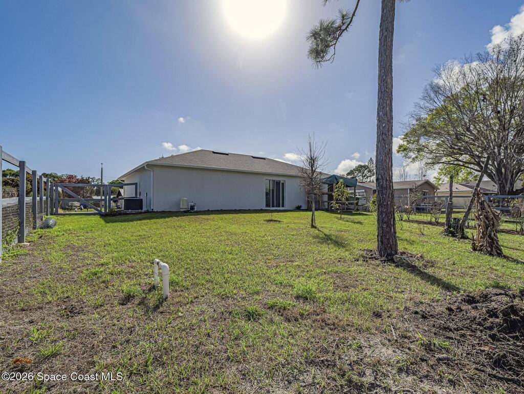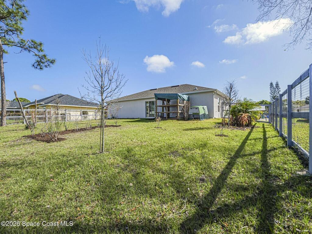 NEWER CONSTRUCTION NO HOA RV & BOAT PARKING. Welcome home to 358 Benschop Street in beautiful Sebastian, Florida, where coastal living meets a rustic homestead lifestyle. Built in 2023 with solid concrete block construction, this move-in ready home offers peace of mind with a 2023 roof, A/C, water heater and hurricane-rated construction to current building codes. Situated on a spacious property with NO HOA and no restrictions, you have the freedom to truly enjoy your property. Bring your boats, RVs, and outdoor toys -- the extended driveway provides plenty of parking and flexibility. The fully fenced yard creates a private outdoor space perfect for pets, gardening, or relaxing Florida evenings. The property also features a plethora of rare and exotic fruits and vegetables, including organic blueberries, Malaysian coconut, and Oranegro avocado, making it ideal for those seeking homestead living or a backyard food garden. Enjoy the best of both worlds -- peaceful living with room to