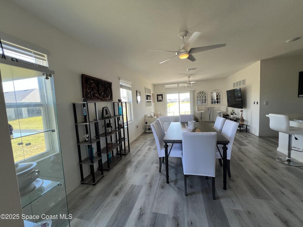 Immaculate two-story on a lake-view corner lot with laminate flooring throughout the entire first floor. Bright, open-concept living flows to an island-ready kitchen and sliders overlooking peaceful water views. Spacious bedrooms, private primary suite, inside laundry, and an oversized 2-car garage. The homesite borders an expansive open green space for extra privacy and elbow room (buyer to verify no-build/common-area status). Minutes to Viera shopping, dining, and entertainment, with quick access to I-95, Cocoa Village, the Indian River, and Florida's beaches--easy commute to Orlando attractions. Enjoy modern construction, low maintenance, and tranquil views in a convenient Rockledge location. Move-in ready!