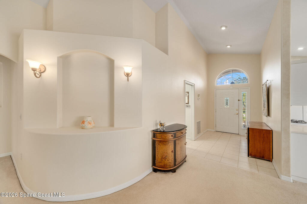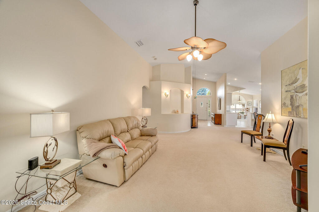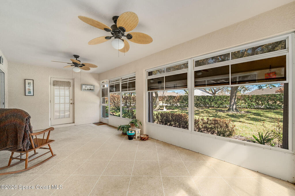 Welcome to desirable Grand Isle! This beautifully maintained 3BR/2BA home offers vaulted ceilings, a screened porch, 2019 roof, 2025 HVAC, and a luxurious remodeled roll-in primary shower for comfort and accessibility. This home shows the pride of ownership. Move in ready!! Enjoy an active adult lifestyle with clubhouse activities, pickle ball, billiards, bocce ball, tennis, fitness classes, yoga, and a sparkling year-round pool with water aerobics. Scenic walking paths, lakes, and lush landscaping create a peaceful setting just minutes from shopping, dining, healthcare, and everything Melbourne has to offer. Whether you prefer social gatherings and community events or relaxing evenings on your porch, this home offers the perfect blend of tranquility, connection, and convenience in one of Melbourne's most desirable 55+ neighborhoods. Centrally located off of Viera Blvd just east of I-95 and Murrell Road. 20 minutes to the beach!!