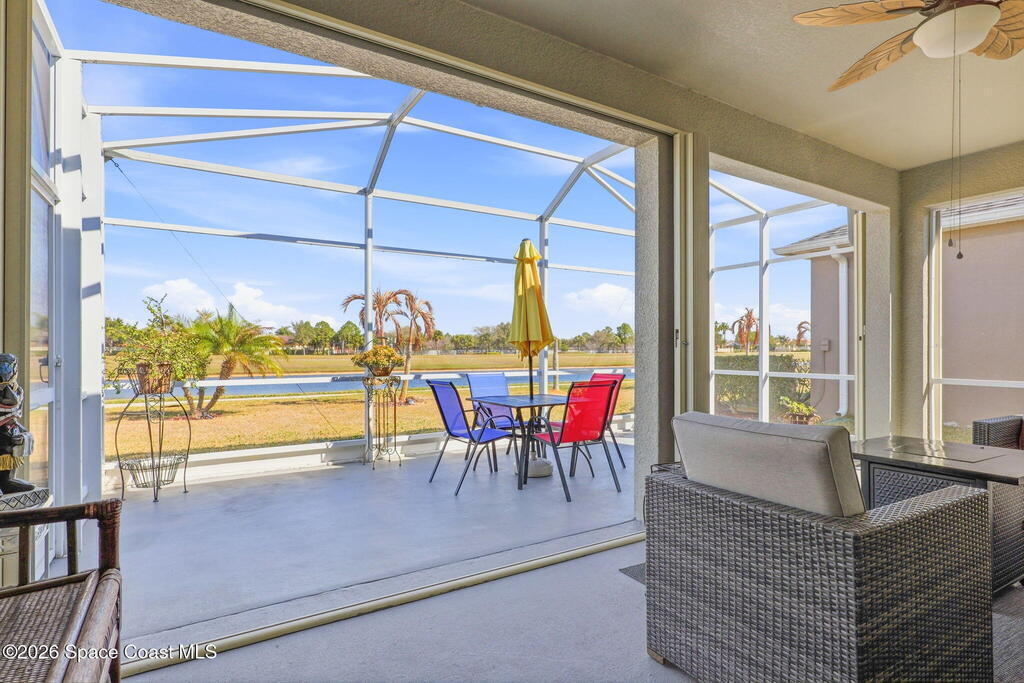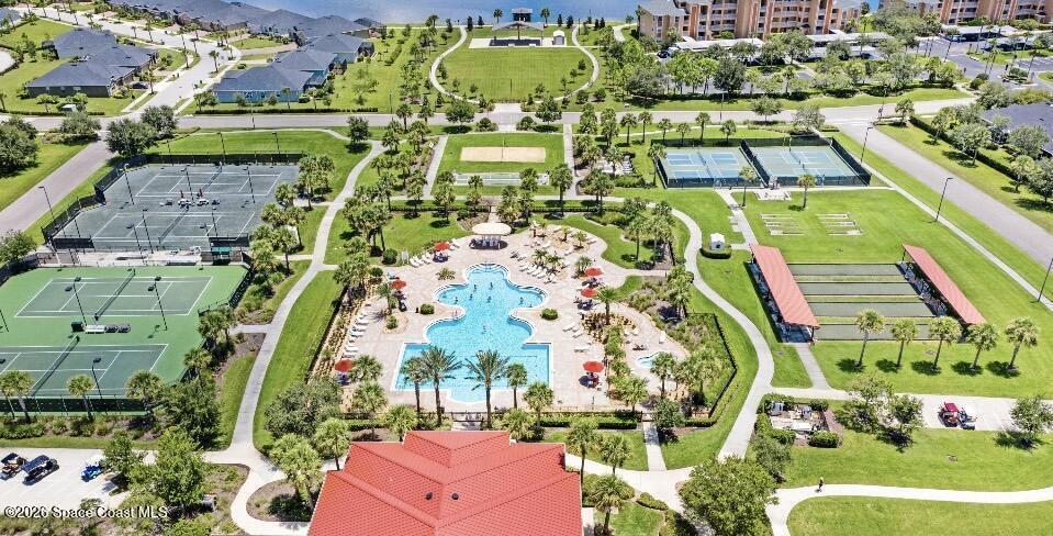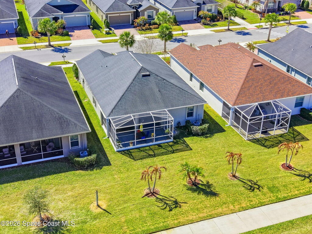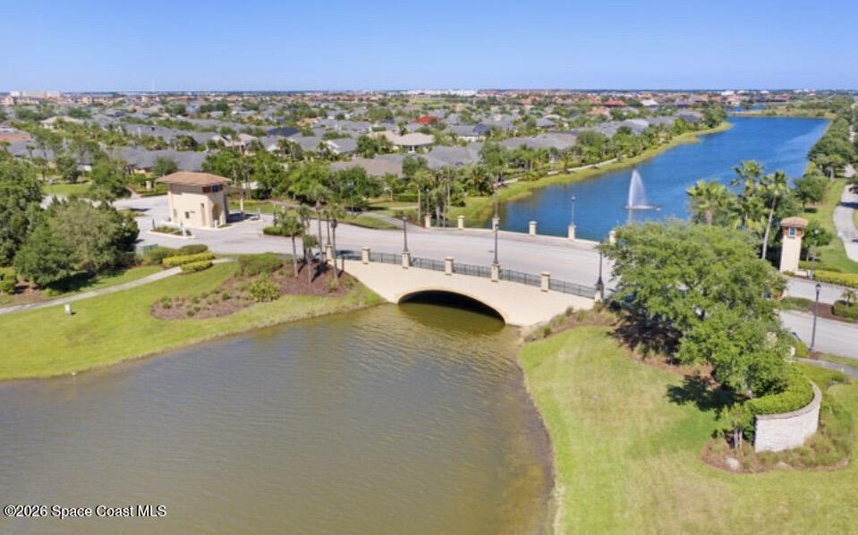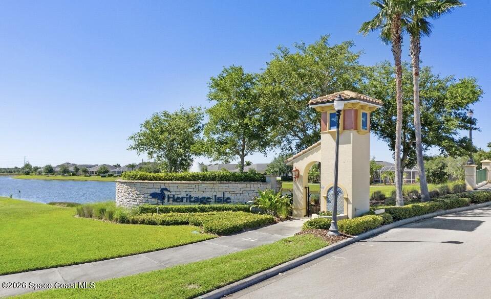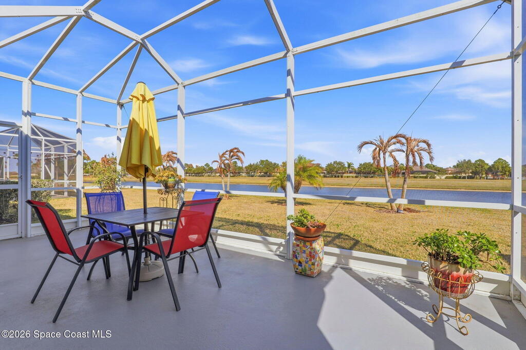 72 Hour Kick Out Clause - Wake up to water views every day in this beautifully maintained 3BR/2BA home in Viera's premier 55+ maintenance-free community. From the moment you walk in, your eyes are drawn straight through the home to the lake. Built in 2015, this open split floor plan features upgraded diagonal tile throughout main areas and baths, newer laminate flooring in all bedrooms (no carpet), and accordion storm shutters for added peace of mind.The kitchen is the true heart of the home--granite countertops, stainless steel appliances, maple cabinetry, mosaic backsplash, breakfast nook, and formal dining space--perfect for entertaining. The primary suite offers serene lake views, lanai access, dual closets, granite double vanity, and a seamless walk-in shower.Step outside to your extended screened lanai and enjoy rare backyard privacy with no rear neighbors--just peaceful water views. Located near the private resident gate for convenience.