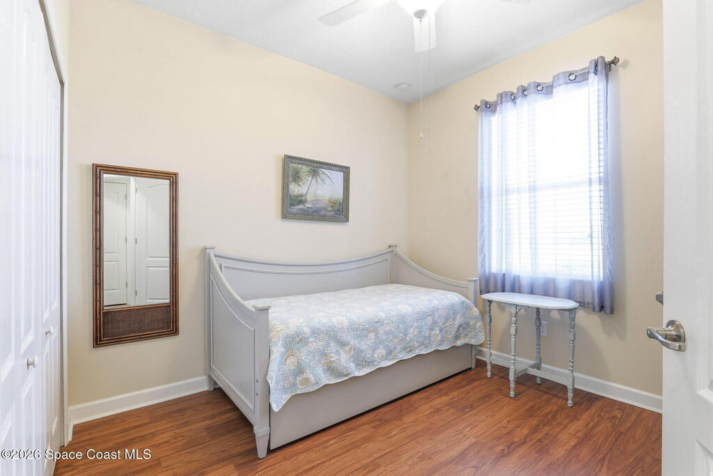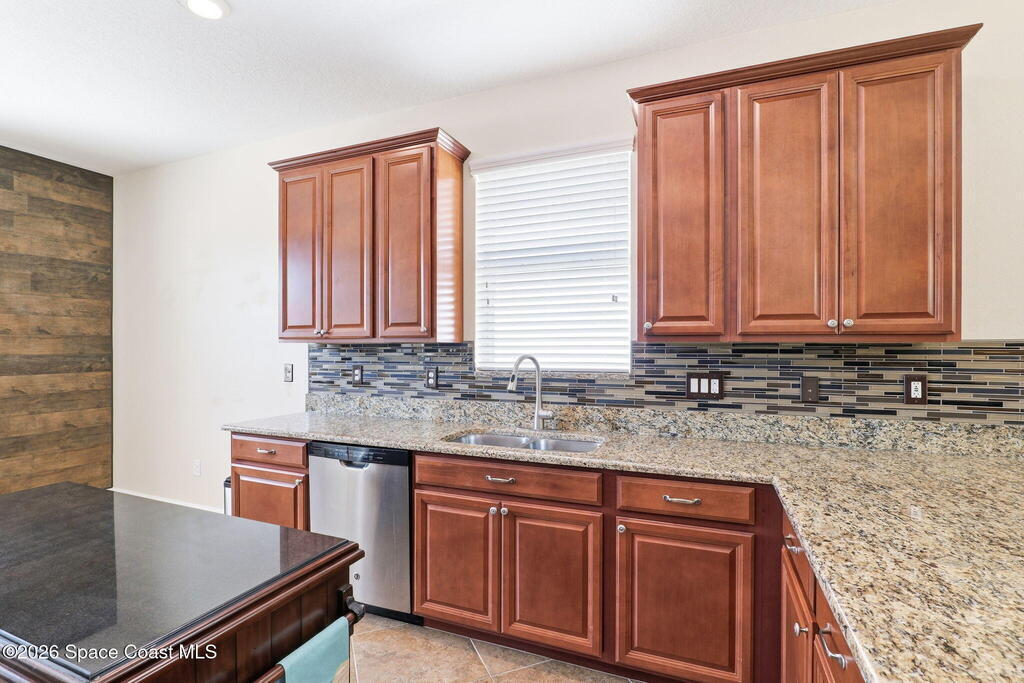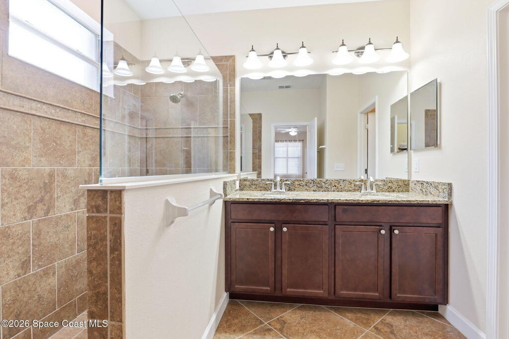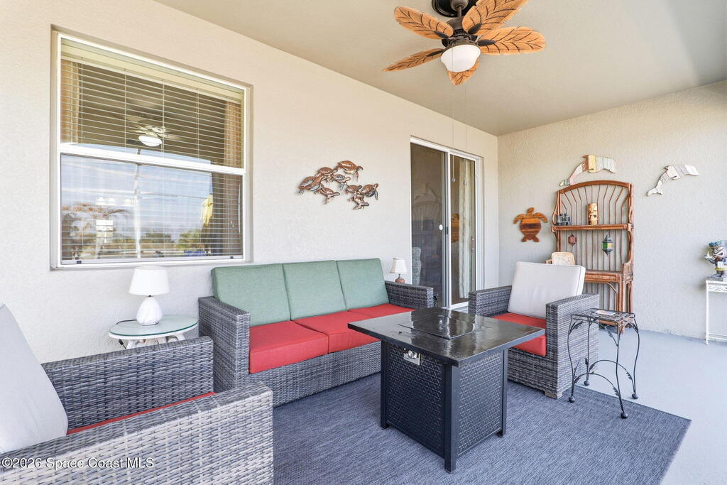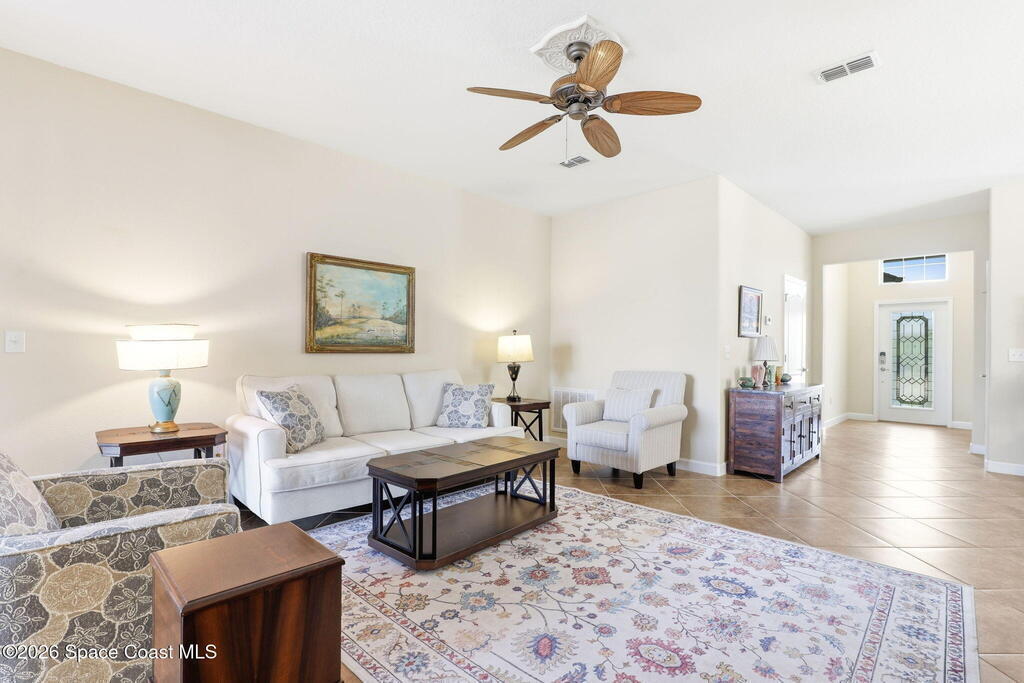 72 Hour Kick Out Clause - Wake up to water views every day in this beautifully maintained 3BR/2BA home in Viera's premier 55+ maintenance-free community. From the moment you walk in, your eyes are drawn straight through the home to the lake. Built in 2015, this open split floor plan features upgraded diagonal tile throughout main areas and baths, newer laminate flooring in all bedrooms (no carpet), and accordion storm shutters for added peace of mind.The kitchen is the true heart of the home--granite countertops, stainless steel appliances, maple cabinetry, mosaic backsplash, breakfast nook, and formal dining space--perfect for entertaining. The primary suite offers serene lake views, lanai access, dual closets, granite double vanity, and a seamless walk-in shower.Step outside to your extended screened lanai and enjoy rare backyard privacy with no rear neighbors--just peaceful water views. Located near the private resident gate for convenience.
