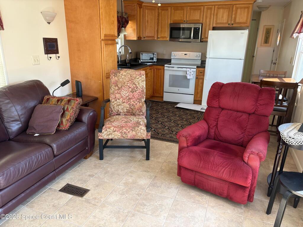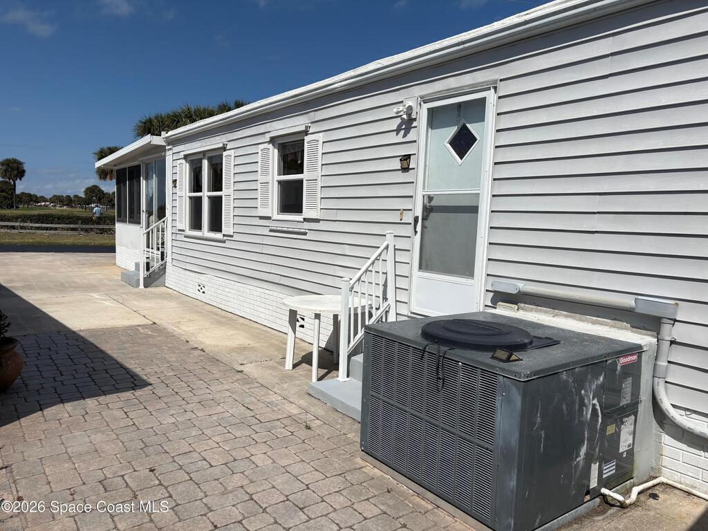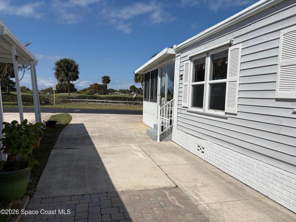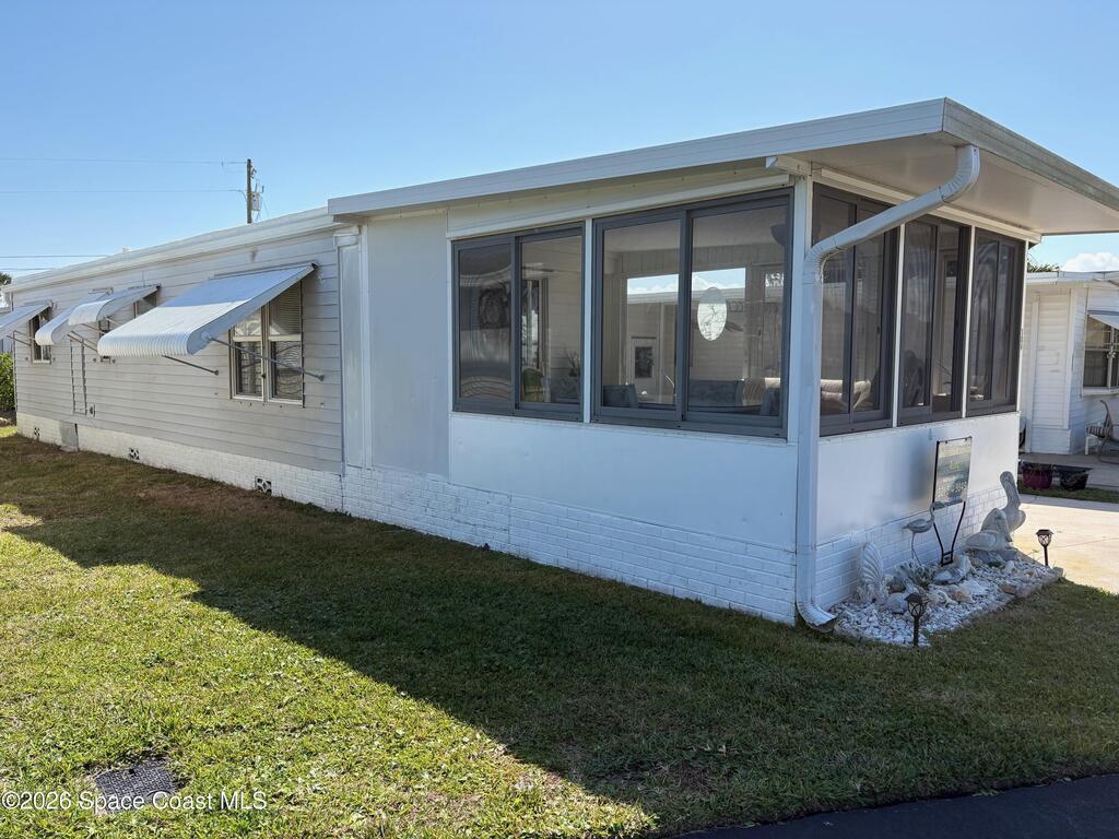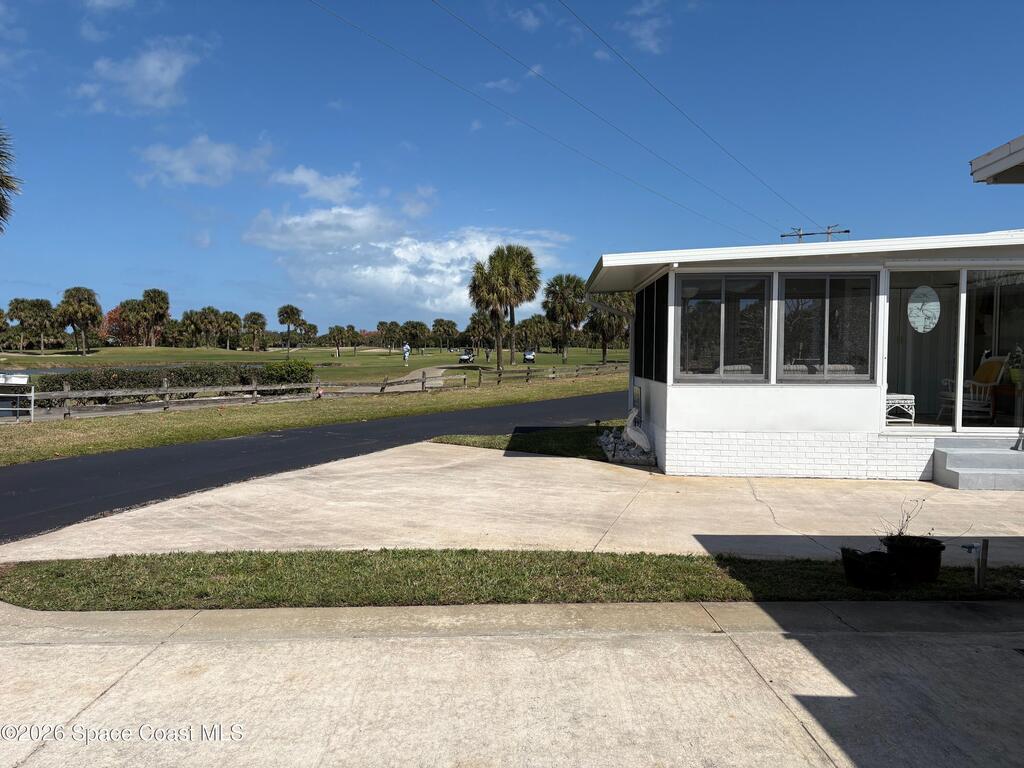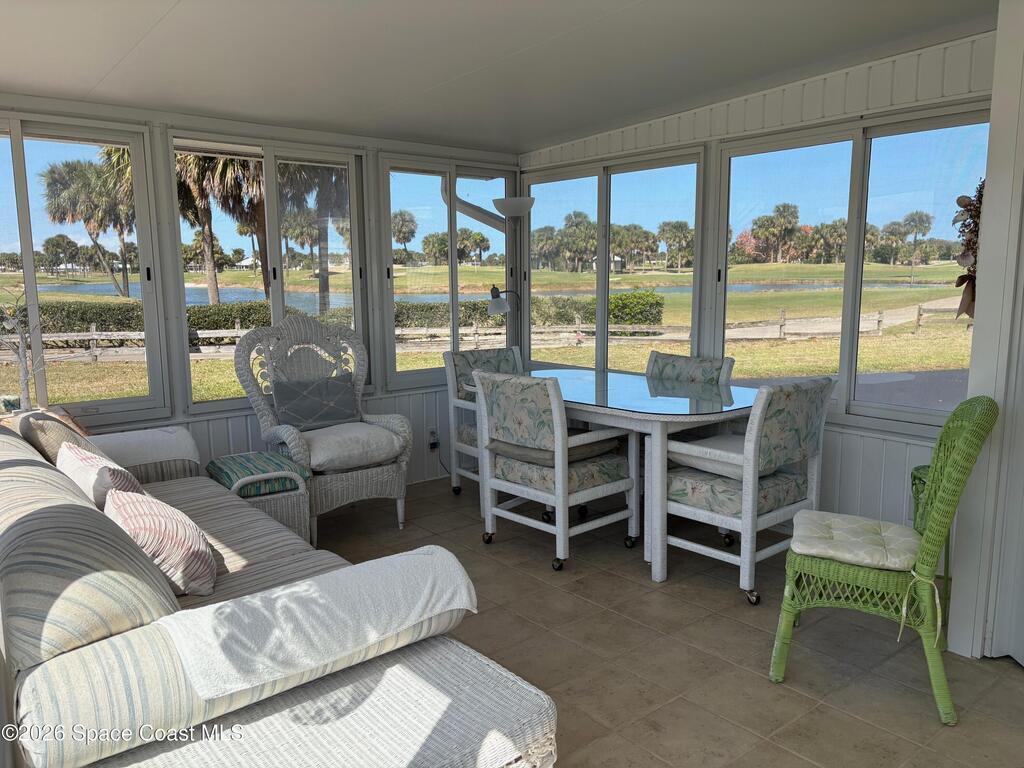 Owner financing possible on this Beautifully renovated and meticulously kept Beachside home in a fabulous location, directly across the street from Spessard Holland Golf Course and just steps to the Indian River!! Spacious, bright open floor plan leads to a fully enclosed front porch, surrounded by Acrylic windows that embrace stunning views of the beautifully landscaped golf course, pond and Indian river. Sheet rock insulation, new windows & storm shutters throughout, new sub floor (3/4 inch) and porcelain tile. Membrane 50 yr. roof, coated every 5 years. New remodeled kitchen, all new plumbing, newer A/C & water heater. Leisure Living Estates is a 55+ Ocean to riverfront community unlike any other.The quaint streets are private and welcoming. This amazing community offers a clubhouse, deeded beach/river access & fishing off the pier! Enjoy low cost, carefree beachside living with just $141 monthly HOA fees that include cable/internet, wifi & basic lawn care service. YOU OWN THE LAND!
