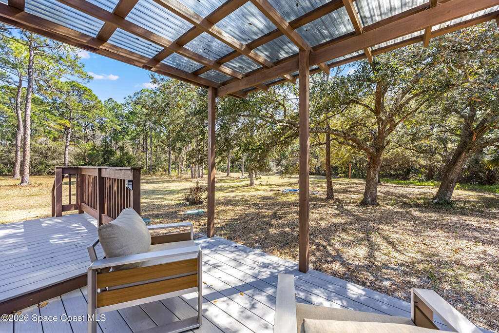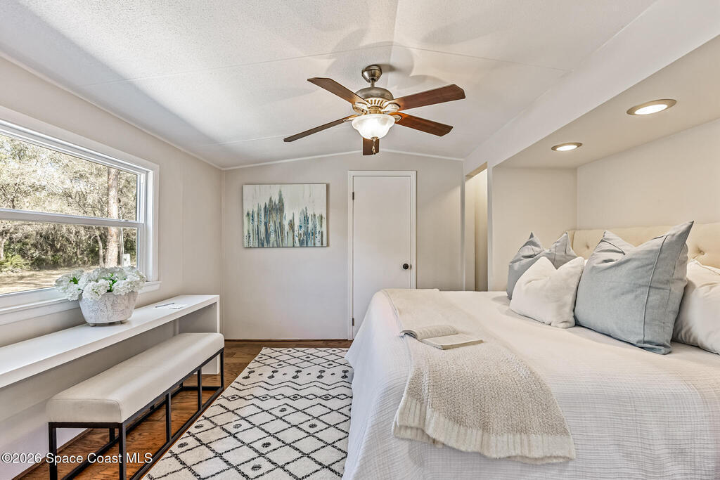 Home on 2 Acres with Endless Possibilities!This 4-bedroom, 2-bathroom home, including a hurricane-coded addition, sits on 2 fully cleared acres, offering plenty of room for workshops, riding ATVs, gardening, or simply enjoying your own private country retreat. The home has been thoughtfully upgraded with hurricane-rated windows & doors, French patio doors, 2 composite decks, laminate flooring, vinyl siding, and resurfaced kitchen countertops. The roof was replaced in 2016, A/C updated, and all electrical boxes are code-compliant. T-Mobile 5g Home Internet works the best.Experience the peace and space of country living while being just minutes from Cocoa Beach, Rockledge, and other nearby attractions. A rare property with room to expand, play, and create your dream lifestyle--schedule your showing today!
