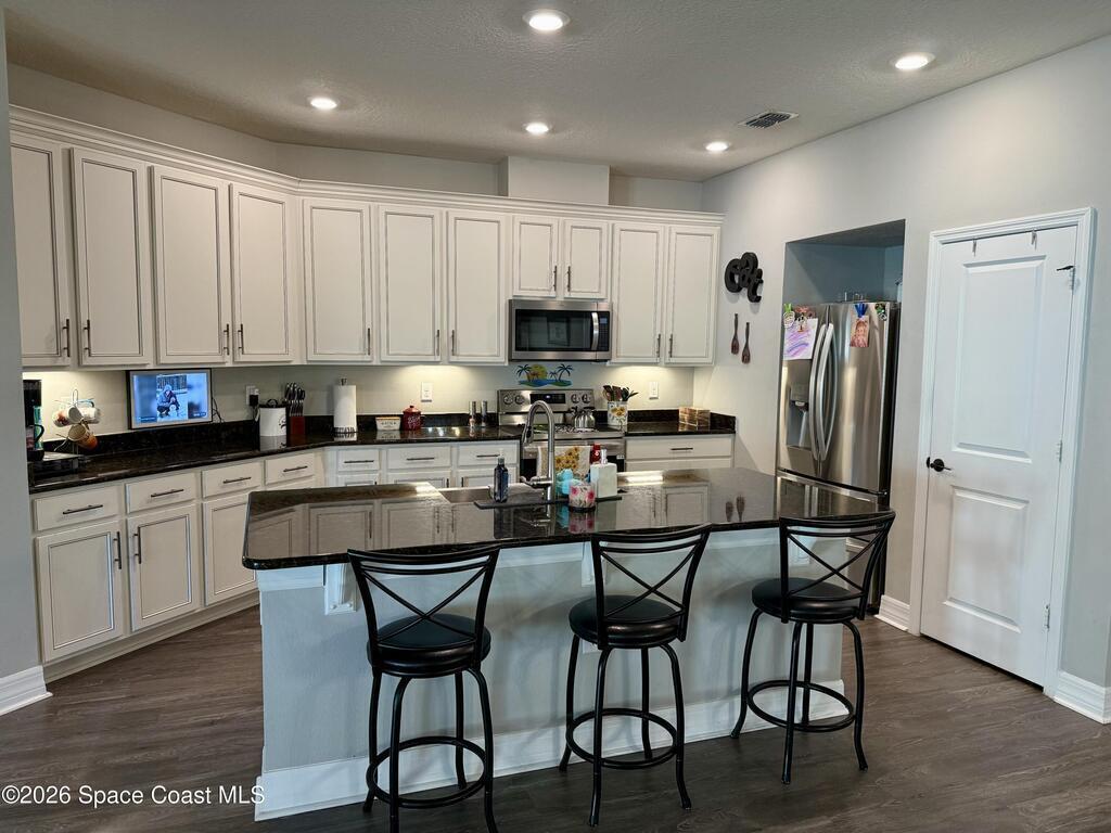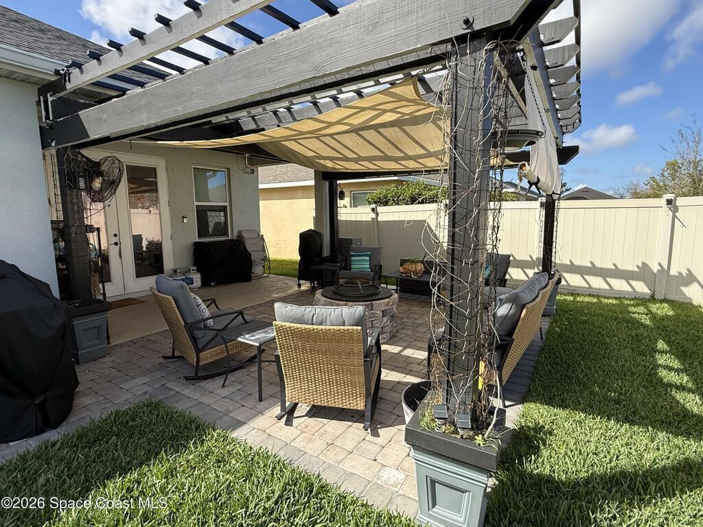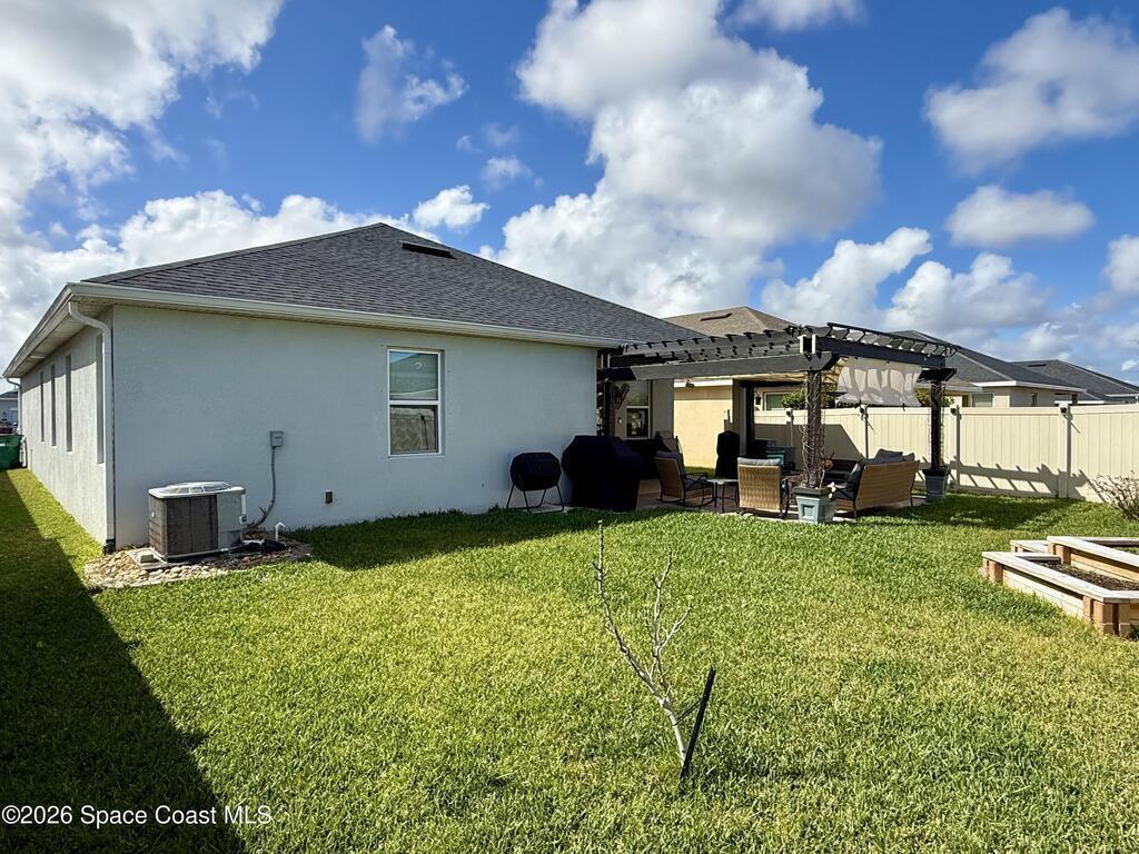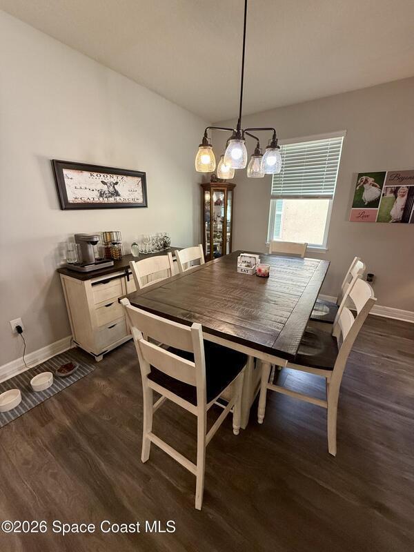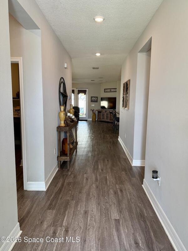 Beautifully maintained 4-bedroom, 2-bath home with a 2-car garage located in desirable West Melbourne. This light and bright residence offers a spacious open floor plan, with high ceilings, and vinyl flooring throughout, designed for comfortable everyday living and easy entertaining. The kitchen overlooks the main living and dining areas, creating a seamless flow ideal for gatherings. The split-bedroom layout provides privacy for the primary suite, complete with a generous walk-in closet and ensuite bath. Enjoy indoor-outdoor living with a covered patio and private backyard space. This home is also equipped with solar panels to help with those monthly power bills. Conveniently located near top-rated schools, shopping, dining, and just minutes to I-95 and the beaches of Florida's Space Coast. A wonderful opportunity to enjoy the best of Brevard County living!