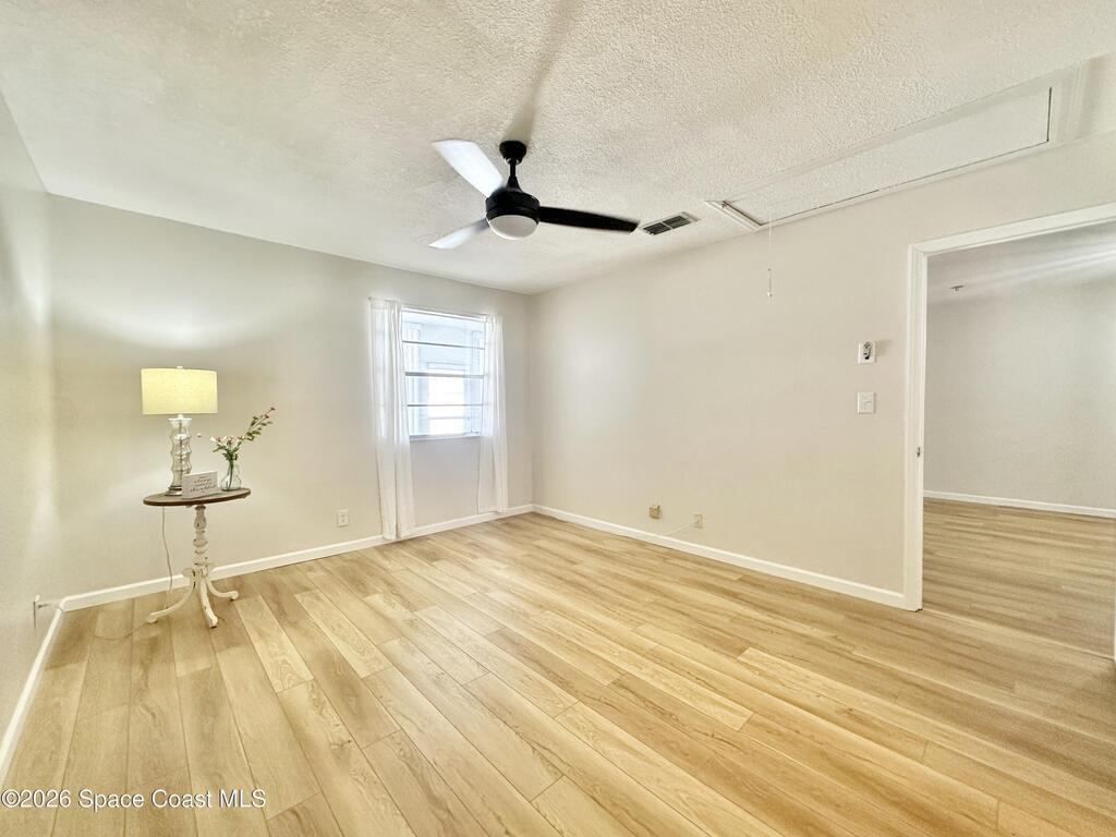 Welcome to this spacious ground-level Titusville townhome featuring a private courtyard-style entrance and an enclosed Florida room that expands usable living space and guest appeal. This 2-bedroom, 2-bath home offers 1, 170 sq ft with durable wood-look flooring, an open living/dining layout, and a generous galley kitchen with ample storage. The primary suite includes a walk-in closet and the dedicated laundry/storage room offers added functionality. Major updates include a roof just 2 years old and HVAC replaced in 2020. The modest HOA fee covers cable TV, Wi-Fi, trash, lawn care, mowing, and irrigation, simplifying ownership costs. With no rental restrictions, this property is well-suited for short-term, seasonal, and long-term rental or use it as your primary residence! Pets are allowed with a 2 pet max, no size limit. Convenient to Kennedy Space Center, Indian River waterfront parks, area beaches, dining, shopping, and the iconic rocket launch viewing can be done from your yard.
