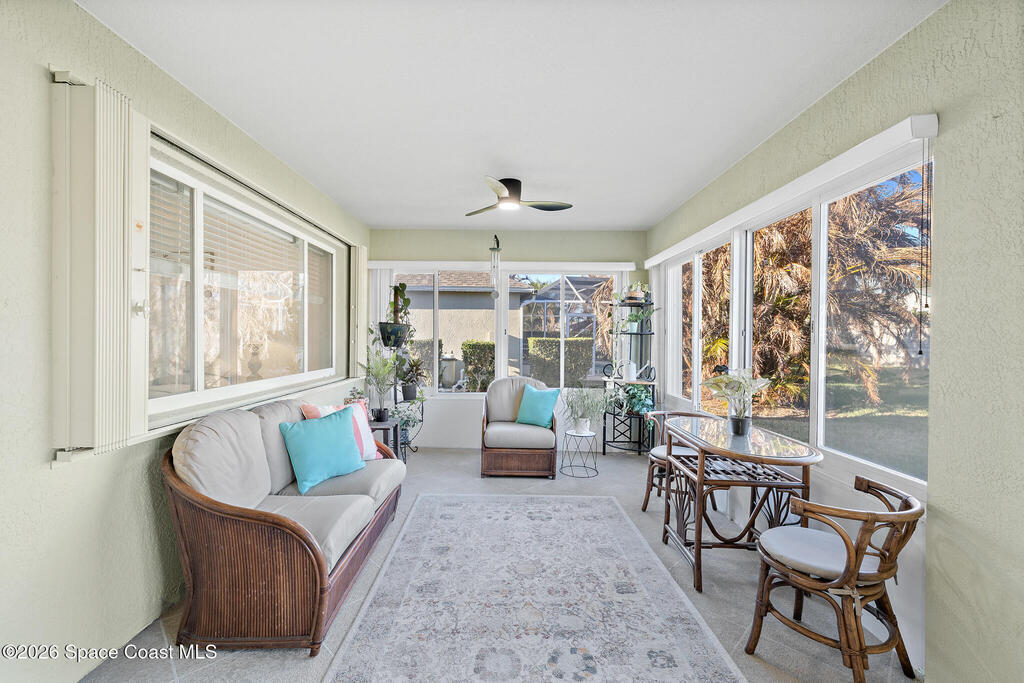 Move-In Ready Home in the 55+ Golf Cart-friendly Community of Grand Isle - Viera, FLWelcome to the highly sought-after, gated community of Grand Isle, where golf cart living, low-maintenance living, and an active lifestyle come together.This beautifully updated 3-bedroom, 2-bath home with a 2-car garage offers peace of mind and modern comfort from the moment you arrive.Major upgrades already done for you: Newer 2020 Roof Hurricane-rated garage door Accordion shutters Fully glass-enclosed porch Low HOAStep inside to a spacious, open hallway that leads to kitchen and family room. New lighting and fans throughout the entire home create a fresh, cohesive feel.The recently updated kitchen is a showstopper, featuring white shaker cabinetry, granite countertops, a convenient drawer microwave, and a 2025 state-of-the-art refrigerator. Whether you are hosting friends or enjoying a quiet evening at home, this kitchen blends beauty and functionality seamlessly.