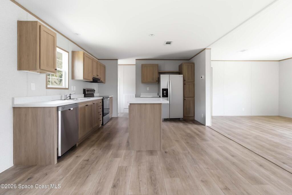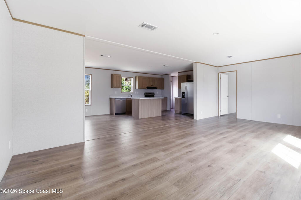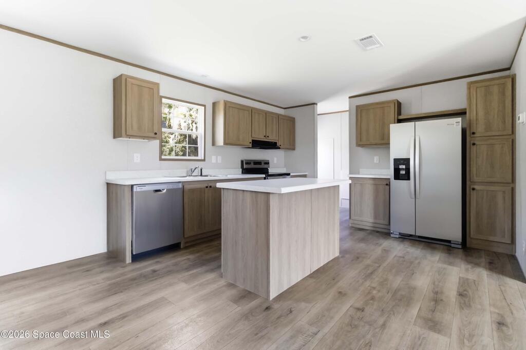 Looking for a BRAND NEW HOUSE?...here it is! Brand new in 2026. Brand new AC, septic system, roof, water heater, double-pane windows, etc.. everything is BRAND NEW! Spacious house that is almost 1, 500 sqft, with 3 bedrooms, 2 bathrooms, and dining area. Large kitchen includes UPGRADED STAINLESS STEEL WHIRLPOOL APPLIANCES, an ISLAND with overhang for casual dining, QUARTZ-LOOK countertops, and LOTS OF CABINETS. The SHAKER-STYLE CABINETS have warm tones to match modern kitchen trends. Tons of NATURAL LIGHT and WOOD-LOOK FLOORING throughout. Each Bedroom has a large WALK-IN CLOSET. INDOOR LAUNDRY ROOM. Very PRIVATE back yard. No HOA and on CITY WATER. Great CENTRAL LOCATION and only minutes to the BEACH, 35 mins to Orlando Int'l Airport, and 45 mins to Orlando.