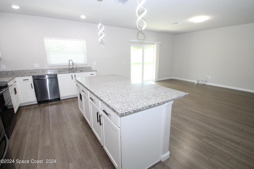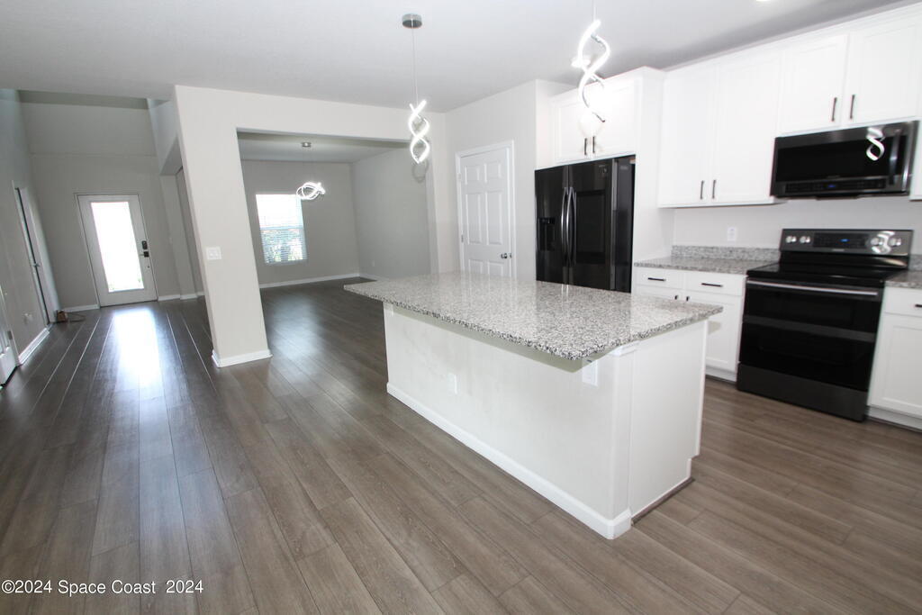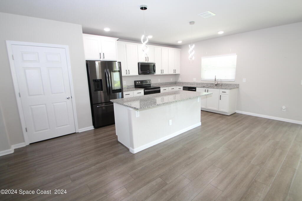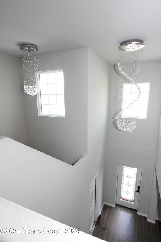 Great location in West Melbourne close to A+ Schools, shopping, and a short drive to the beach. 5 Bedrooms 3 & 1/2 Baths plus a large Loft. Lots of upgrades including PGT impact storm windows, upgraded black stainless appliances including washer & dryer, gorgeous chandeliers & light fixtures, and built-in closets. Over 2600 sq ft under air. Downstairs is a formal Dining Room & Family Room which is open to a large Island kitchen as well as a 1/2 bath. The Primary Bedroom Suite is also downstairs with double sinks, large shower, and walk in closet. Upstairs is a huge Loft perfect for a family/game room & the remaining 4 bedrooms & 2 baths. Perfect floor plan for a large family. Trussed porch, City Water & Sewer. Centrally located close to Northrop Grumman, Harris, & more!