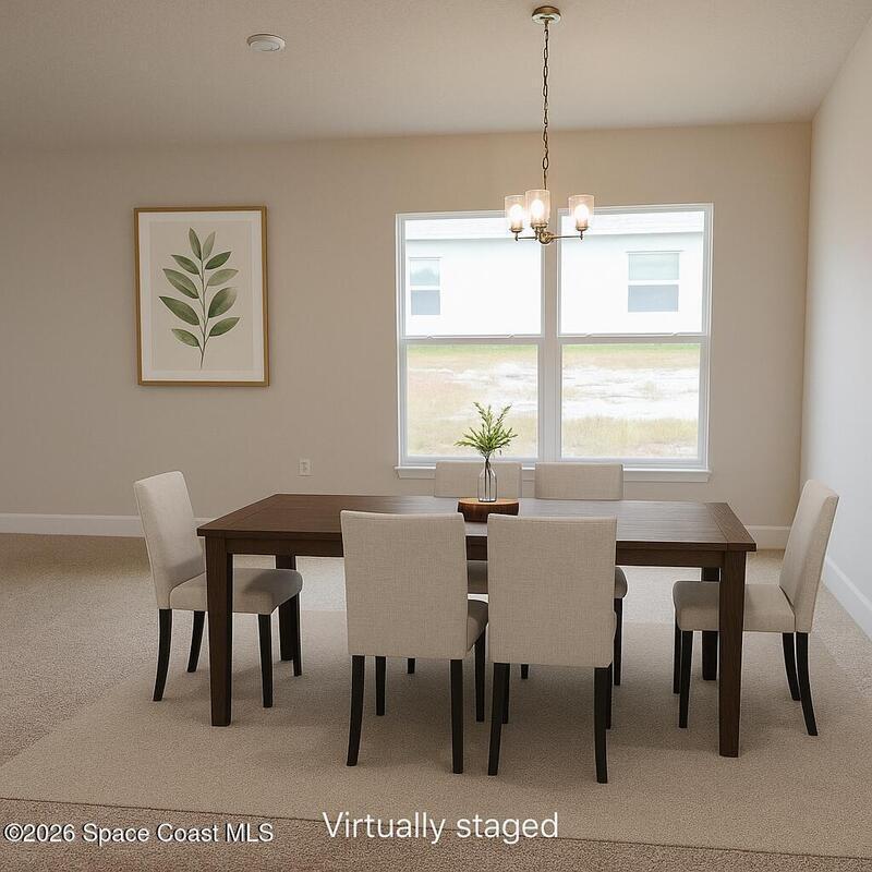 Express Move in! $1, 000 deposit! Closing costs paid with preferred lender. Welcome to this stunning 4-bedroom, 2-bath home where style and comfort combine to offer a bright, open, split layout perfect for relaxing or entertaining. The heart of the home is the kitchen, featuring sleek stainless steel appliances, ample counter space, large island, and a large pantry with double doors--perfect for culinary adventures and entertaining. The open living and dining areas extend to a spacious covered porch, inviting you to soak in Florida's sunshine and breezes. The split-bedroom layout ensures privacy, with a serene owner's suite that boasts dual vanities, separate shower and a private water closet. Pictures are samples, Colors may vary.