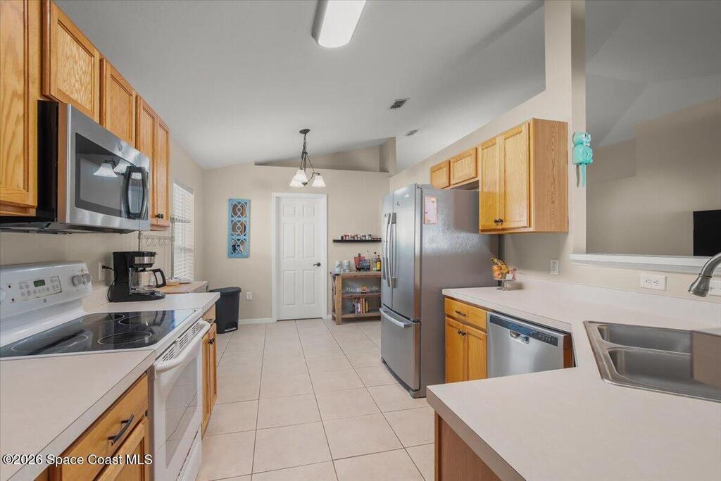 Buyer financing fell through! Their loss is your gain! In addition to NEW ROOF, NEW AC and HOT WATER HEATER installed. This SPACOIUS 3-bedroom home is MOVE IN ready! Make an offer today! From the moment you step inside, you'll be greeted by soaring VAULTED CEILINGS that create a bright, open feel throughout the main living space--perfect for both relaxing evenings and entertaining guests.The thoughtfully designed floor plan features SPACIOUS BEDROOMS, including a private primary suite with its own full bath. The kitchen flows seamlessly into the living and dining areas, creating an inviting space for everyday living and gatherings.Step outside and fall in love with the LARGE LANAI--ideal for morning coffee, outdoor dining, or hosting friends year-round. The fully FENCED BACKYARD provides added privacy and plenty of room for pets, play, or gardening.