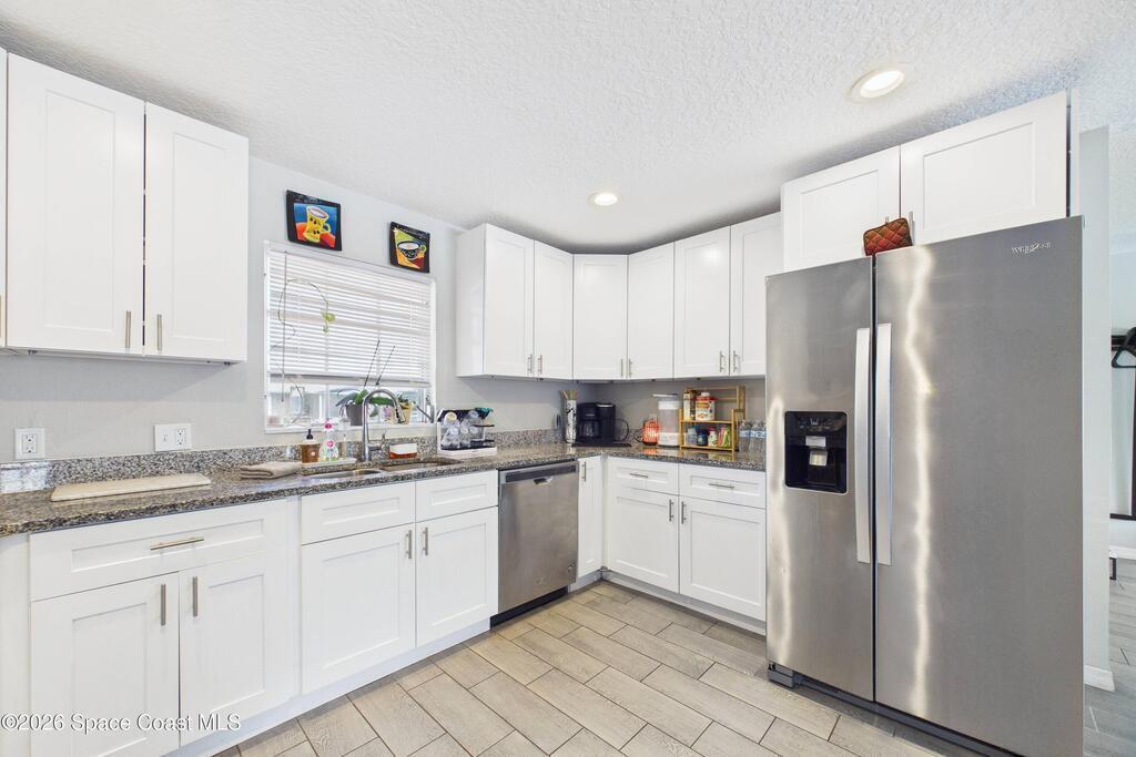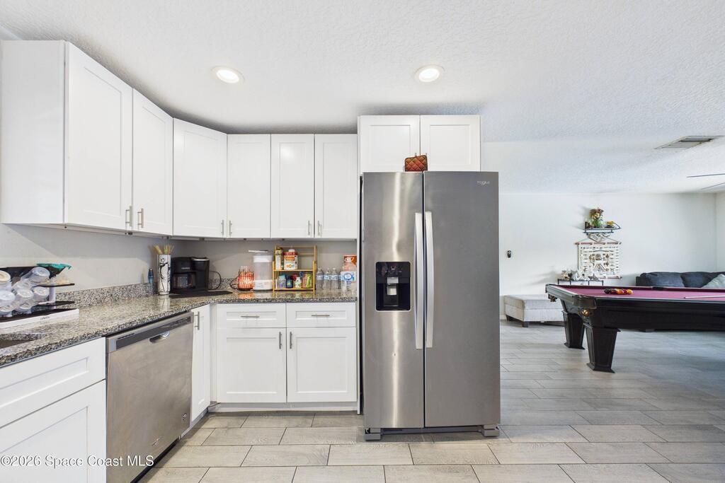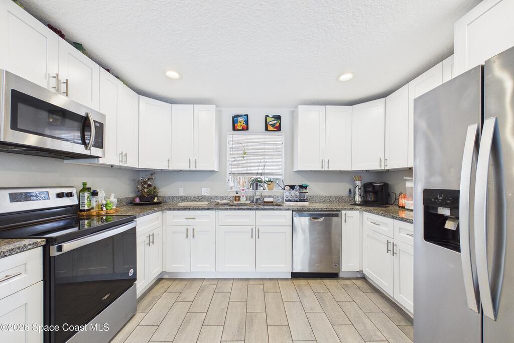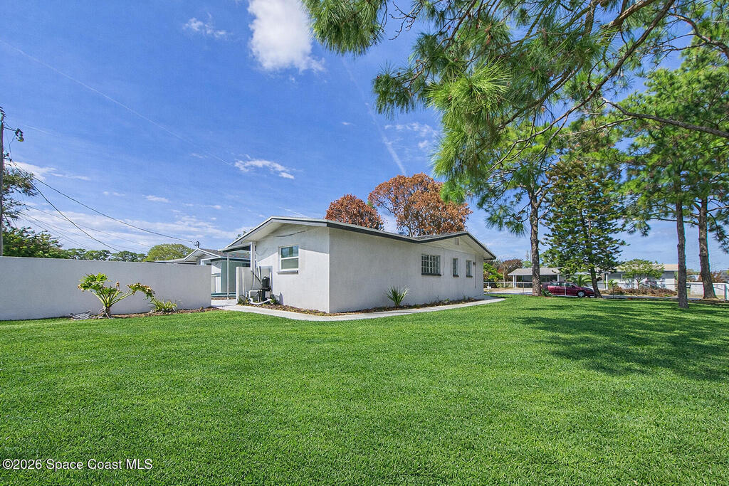 Float in the pool and watch rocket launches from this highly sought-after split floor plan pool home filled with natural light from sliders surrounding the pool and creating seamless indoor-outdoor living. This renovated 4-bedroom home sits on an oversized corner lot near North Banana River Dr and features an open layout, updated kitchen with granite counters, and stainless appliances, wood-plank tile in the main living areas. Both bathrooms have been beautifully remodeled, and the primary suite and fourth bedroom offer direct pool access. Conveniently located minutes to Cocoa Beach, Kelly Park boat ramps, tennis courts, playgrounds, and quick access to Hwy 520.