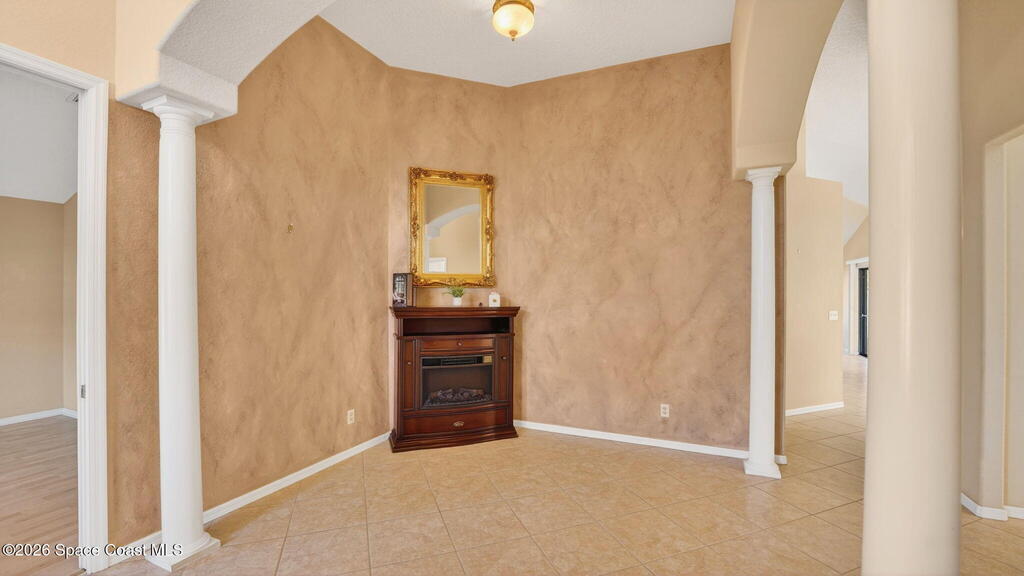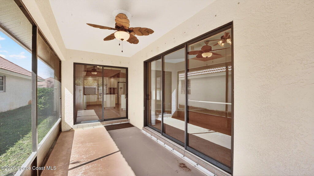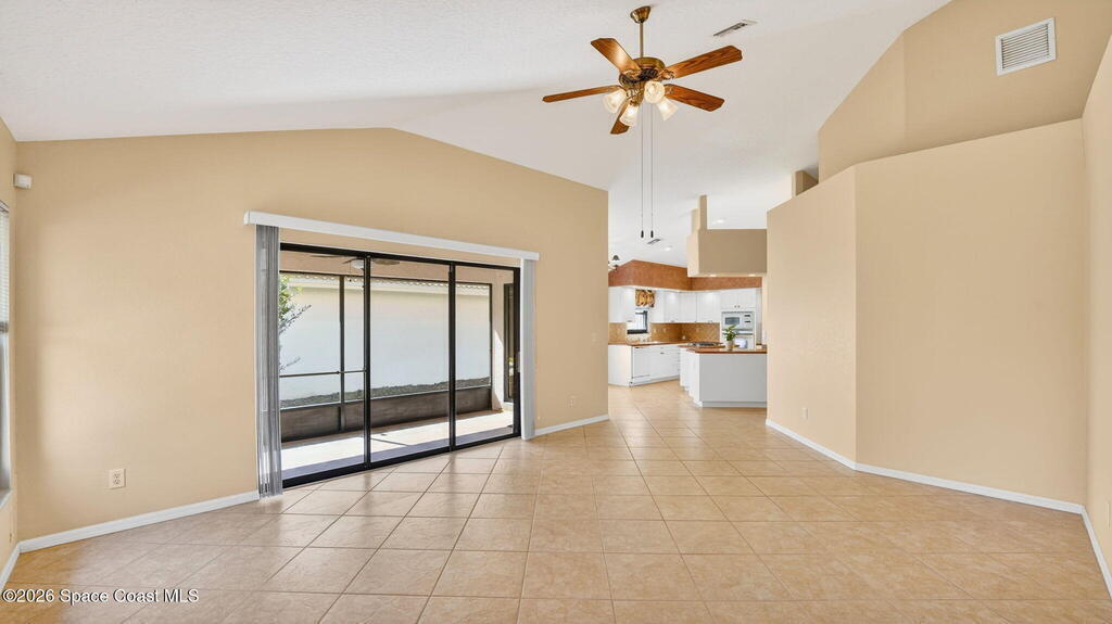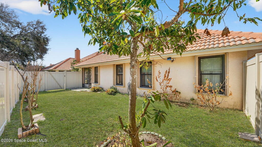 Beautiful 3-bedroom, 2-bath home located in the heart of Titusville in a highly desirable neighborhood of well-kept homes.LOT GOES ALL THE WAY BACK TO THE BLOCK WALL. Originally the builder's model, this home features elegant arches, columns, and vaulted ceilings throughout, creating a bright, open feel. The light and bright kitchen offers plenty of cabinet and counter space plus a gas cooktop--perfect for everyday cooking and entertaining. The spacious primary suite includes a large garden tub, separate shower, and double vanities. Guest bath is generously sized. Enjoy a dedicated laundry room and a utility sink in the garage. The dining and living areas open to the back porch through two sets of sliding doors, including an impressive wall of sliders to a cute, easy-care backyard. UPDATED WINDOWS and accordion storm shutters provide peace of mind.