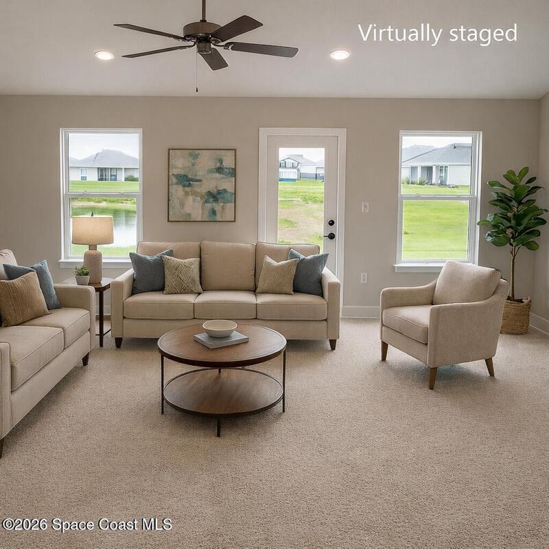 $1, 000 deposit! Closing costs paid with preferred lender. Welcome to this stunning 3-bedroom, 2-bath home where style and comfort combine to offer a bright, open, split layout perfect for relaxing or entertaining. The heart of the home is the kitchen, featuring sleek stainless steel appliances, ample counter space, large island, and a large pantry-perfect for culinary adventures and entertaining. The open living and dining areas extend to a spacious covered porch, inviting you to soak in Florida's sunshine and breezes. The split-bedroom layout ensures privacy, with a serene owner's suite that boasts dual vanities, tiled floors, separate shower, a soaking tub, and a private water closet.