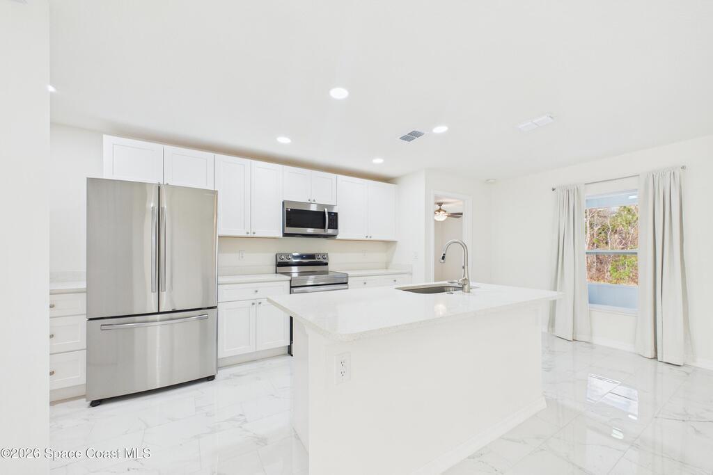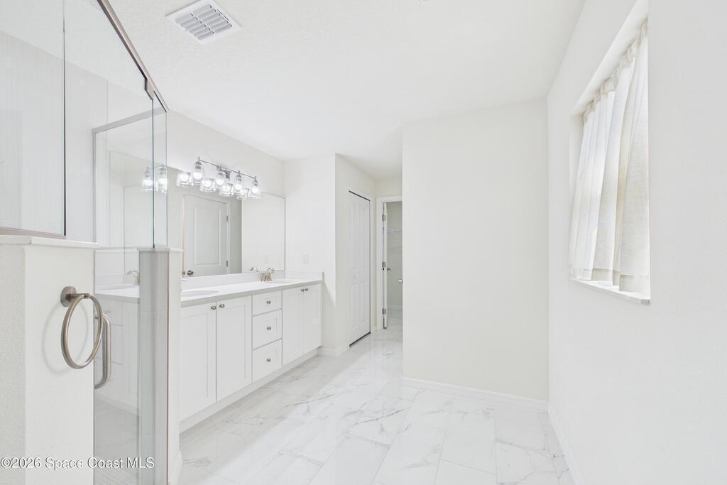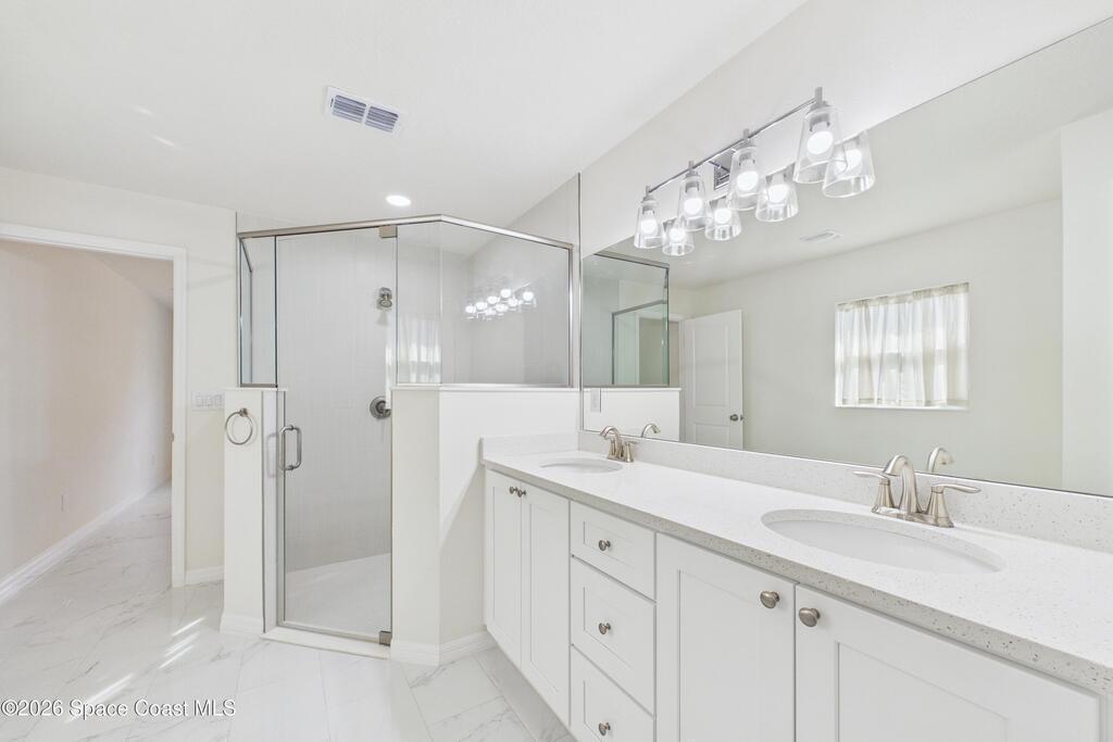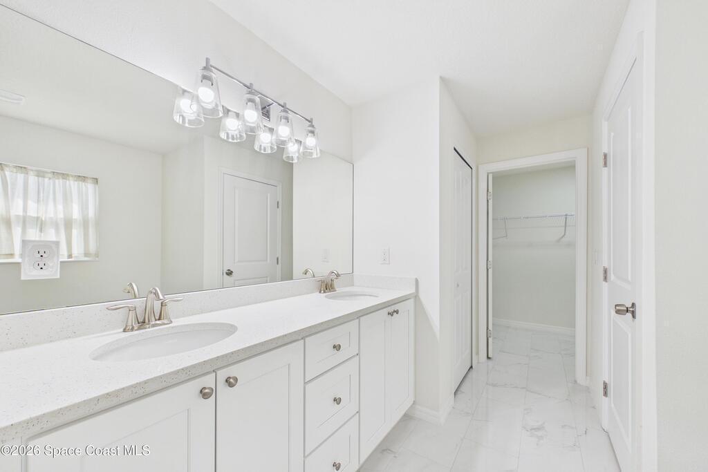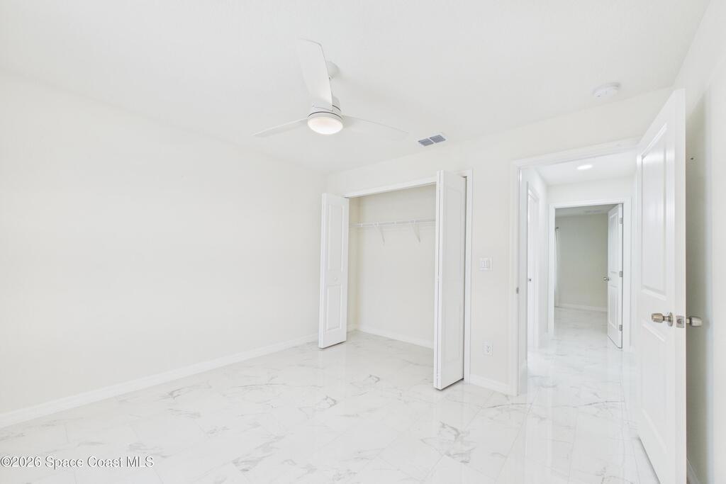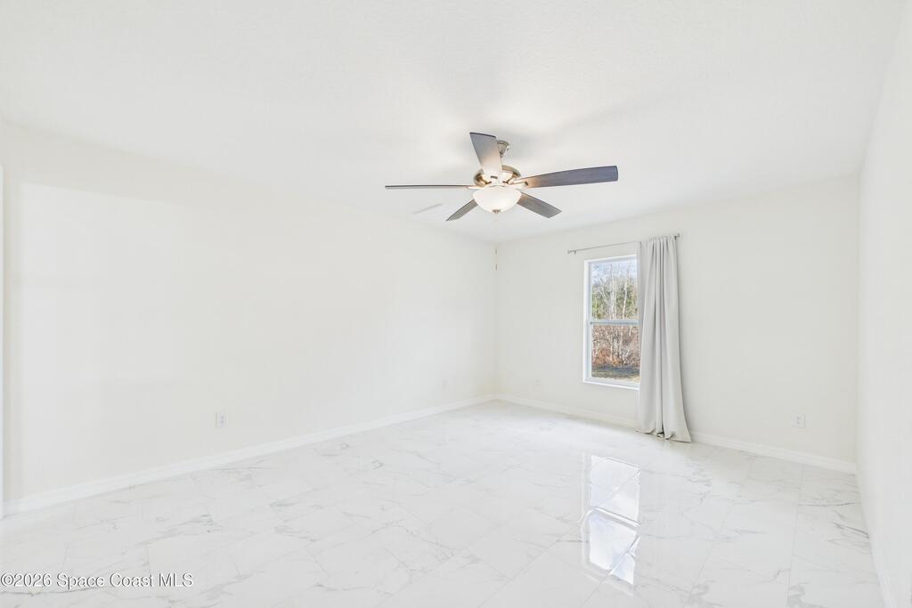 Welcome to your 2023 better-than-new dream home! Loaded with upgrades, this home features hurricane impact windows, a whole-house water filtration system, and a whole-house surge protection for peace of mind. The beautiful exterior makes a striking first impression, while the fully trussed & screened front and back porches expand your living space, perfect for entertaining or relaxing. The back porch measures an impressive 22' x 10.5', a rare find in new builds. Inside, quartz countertops shine against gorgeous marble-look tile flooring, absolutely NO carpet. Fully tiled showers elevate both bathrooms. The expansive primary ensuite is a true luxury retreat with a large walk-in shower, dual sinks, a private toilet closet, a generous walk-in closet, and its own linen closet. Just minutes from the new Publix near St. John Heritage, with no HOA, this home checks every box! Washer & dryer INCLUDED!Lawn digitally enhanced due to cold weather; grass will recover with seasonal warmth :)