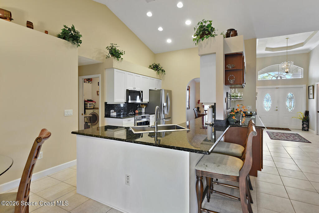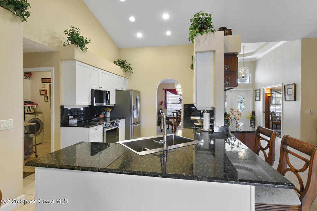 Breakfast Bar, Central Vacuum, Eat-in Kitchen, Entrance Foyer, Open Floorplan, Pantry, Primary Bathroom -Tub with Separate Shower, Split Bedrooms, Vaulted Ceiling(s), Walk-In Closet(s)