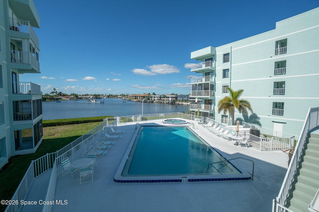 DIRECT RIVERFRONT 2 Bedroom/2 Bath condo in the HEART OF COCOA BEACH with unobstructed BANANA RIVER VIEWS from the kitchen, living area, and the primary suite! Watch dolphins, manatees, and stunning sunsets from your private balcony and experience true Florida living at its best! The kitchen features granite countertops, stainless steel appliances, and a breakfast bar that opens to the living and dining areas. The primary suite offers generous space, abundant natural light, and sliders overlooking the river. Sleek tile and wood-look laminate flooring flow throughout. Peace of mind updates include a new 2025 hot water heater, hurricane impact sliders, storm door, and full building restoration completed in 2025. In-unit laundry, secure 1-car garage, and separate storage add everyday convenience. Minutes from the beach, restaurants, grocery, shopping, and parks--everything Cocoa Beach has to offer is right at your doorstep!