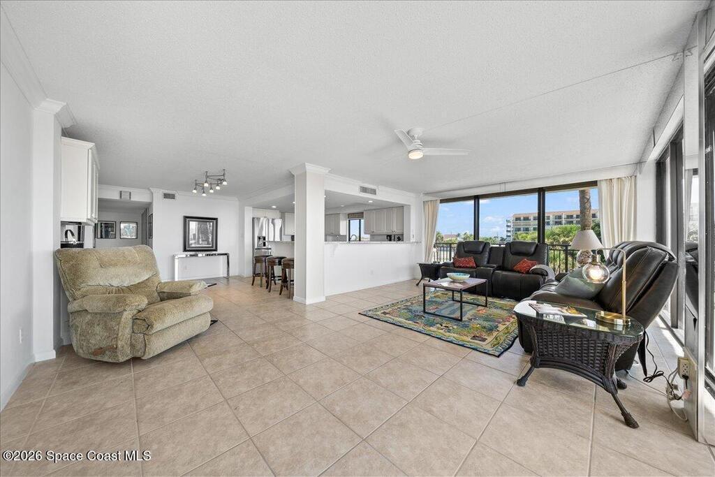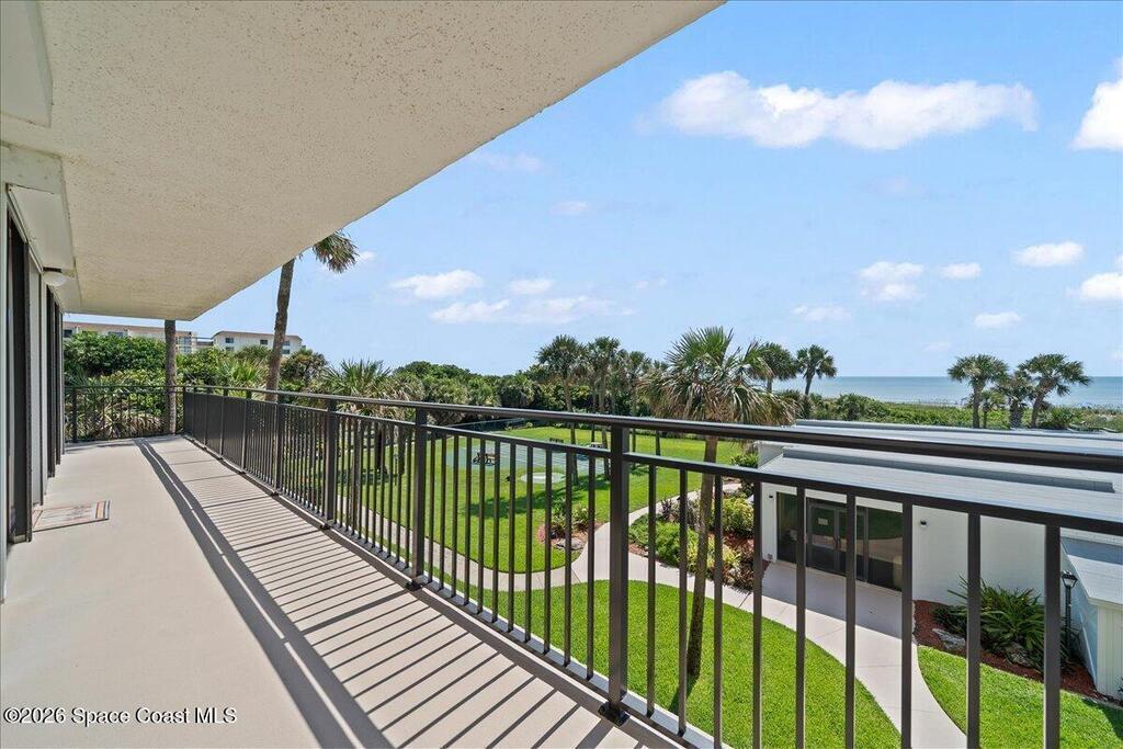 Less than an hour from Orlando International Airport, this gorgeous east-facing NE corner direct oceanfront condo offers the ultimate Florida coastal lifestyle. Enjoy breathtaking sunrises over the Atlantic, sunsets over the Banana River and front-row views of rocket launches from the expansive wraparound balcony or private beach access. This spacious residence features abundant storage and a rare 10x20 private garage. Ideally located in the heart of Cocoa Beach between the iconic Cocoa Beach Pier and downtown, you'll enjoy year-round events including international boat races, holiday boat parades and Friday Fest gatherings. Walk to Ron Jon Surf Shop and enjoy everyday conveniences just across the street including Publix, local shops, restaurants and entertainment. The secured building offers resort-style amenities including a large oceanfront pool with clubhouse, fitness center, billiards room, grilling area, shuffleboard, tennis and pickleball courts. Residents enjoy an active social