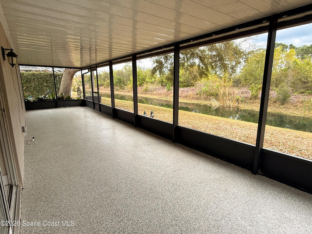 Welcome home and say hello to peace of mind! A 4 bed, 2 bath move in ready home, in the heart of Suntree. New impact windows throughout, offering added storm protection and energy efficiency. Relax and unwind on your private screened-in porch featuring an industrial epoxy-finished patio, where you'll enjoy tranquil pond and preserve views that bring nature right to your backyard. The spacious primary suite offers serene water views, a large walk-in closet, en-suite bath with double sinks, a Jacuzzi tub, and a separate shower. Additional updates include a 2018 roof, newer A/C and air handler (within the last four years), and a gas hot water heater installed in 2015. Peaceful views and low maintenance living with lawn care included in HOA. Must see!