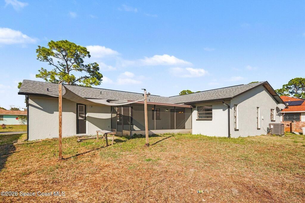 Beautiful 4-bed, 2-bath Palm Bay home with NEW ROOF and gutters, fresh paint inside and out, and other upgrades. This home features a nice layout, bright natural light, and backyard ready for your Florida lifestyle. Minutes to everything--schools, parks, shopping, I-95 and beaches. A beautiful home with room to live, work, and play!