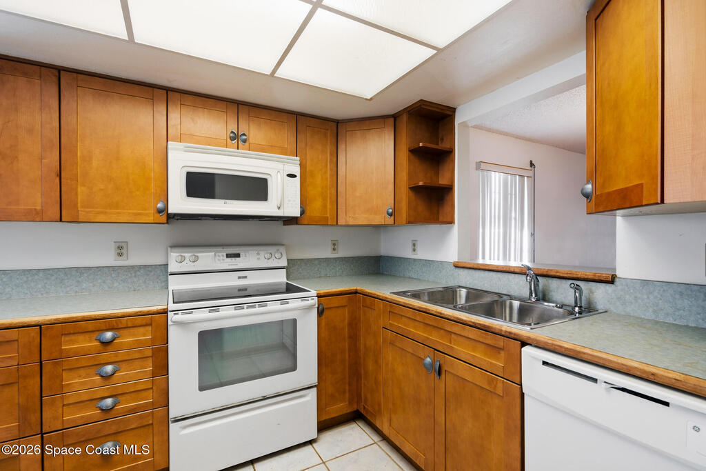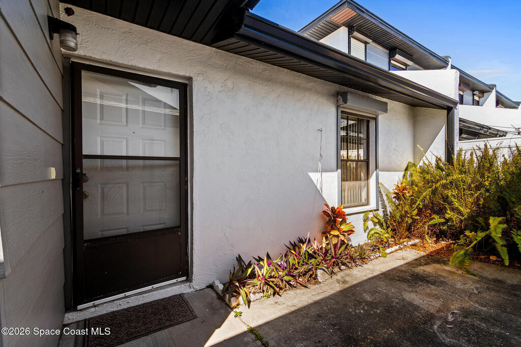 Spacious and desirable GROUND floor end-unit townhome quietly located within walking distance to the beach in a well-kept neighborhood. Featuring a private entry courtyard, open living/dining area with screened porch, updated kitchen with built-ins, and 2 bedrooms, 2 baths. Bedrooms have large closets with newer doors. Appliances, washer/dryer, laundry room, one-car garage, carport, and guest parking are included. Enjoy the community pool, clubhouse, lovely grounds, and close proximity to PAFB, restaurants, and shopping.