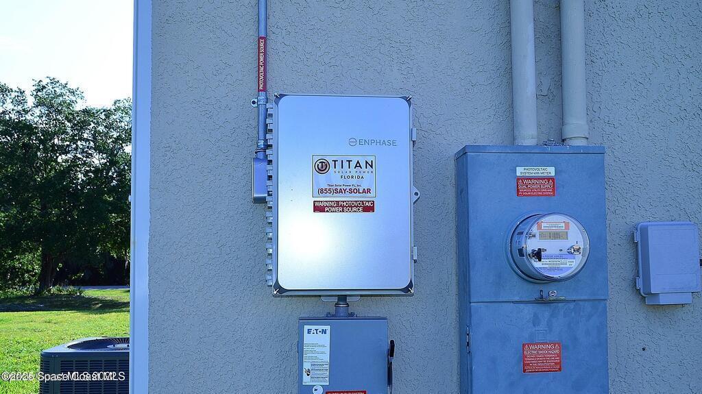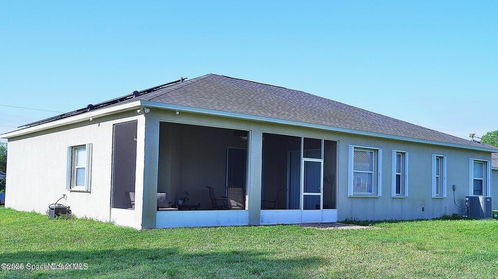Don't miss this CITY WATER home with No HOA!! Beautifully maintained 3 bed plus office/4th room, 2 bath home just minutes from Bayside Lakes! New Roof 2021, New hot water heater 2021, Newer AC 2020, Updated interior 8' doors and hardware 2021, Indoor laundry room. Vaulted ceilings & split bedrooms, Solar panels installed/Titan solar November 2020 (no balance). New toilets 2021, new Shower heads 2022, Large Trussed screened patio, Septic cleaned/checked annually with Palm Bay Septic, a well on the property that could be used for irrigation purposes. Close to shopping, schools and so much more!