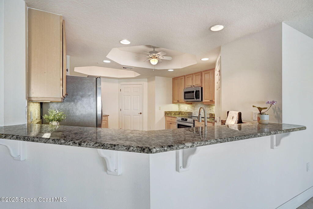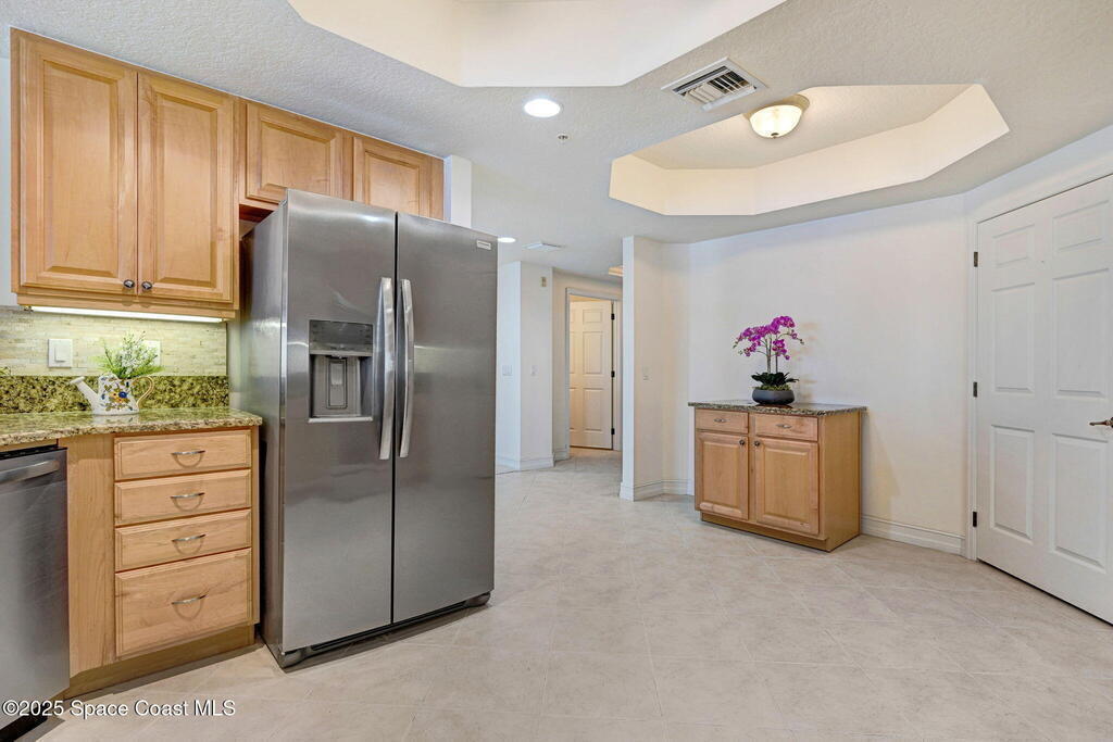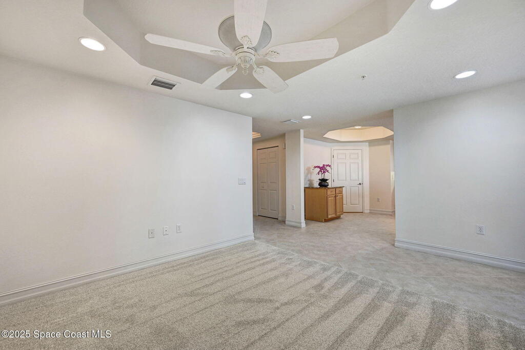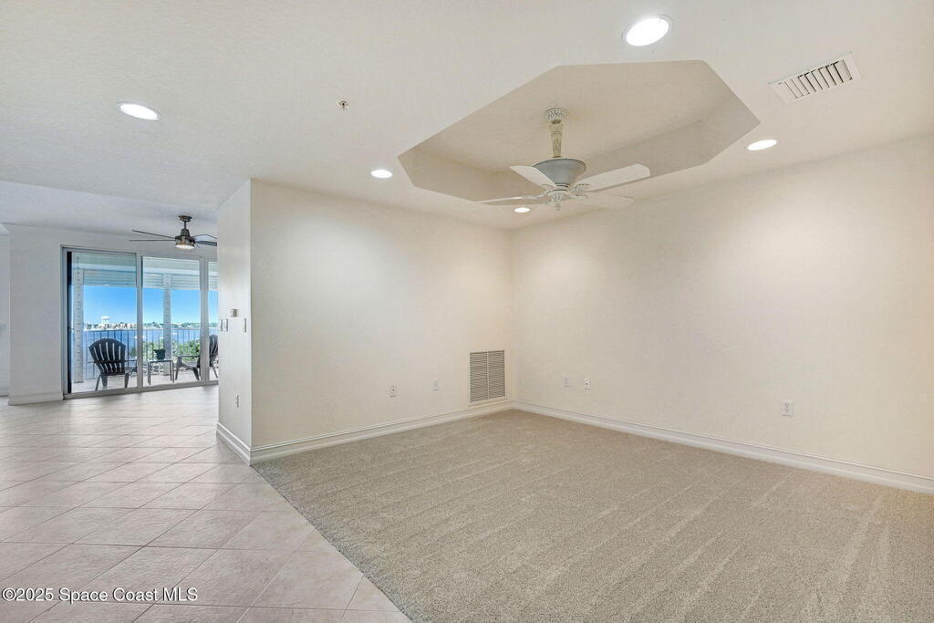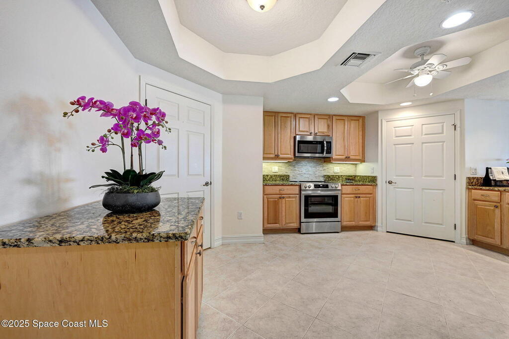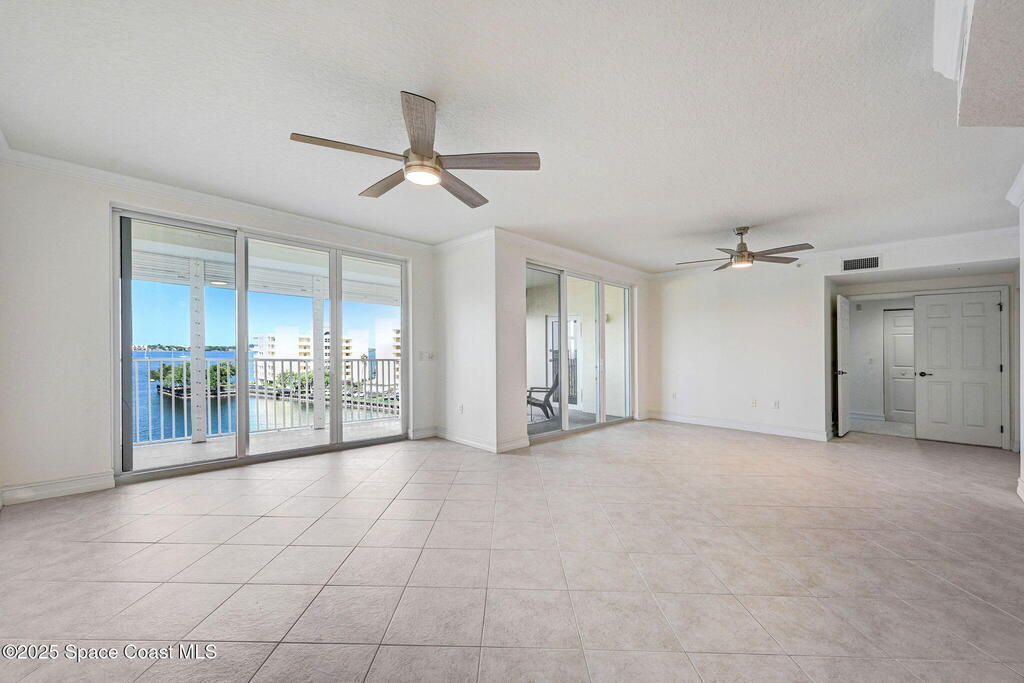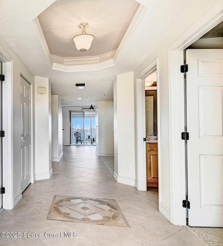 Enjoy waterfront living in Island Pointe Condominium, a gated luxury community on the Indian River in Merritt Island. This spacious 3-bedroom, 2-bath condo offers stunning river views and spectacular sunsets from your private balcony. The open floor plan features 10' ceilings and a large great room perfect for relaxing or entertaining. The kitchen includes granite countertops, new stainless-steel appliances, a walk-in pantry, and a rolling island. A versatile flex space is ideal for an office or formal dining. The primary suite features a whirlpool tub for a spa-like retreat. Resort-style amenities include two heated pools, a clubhouse with fitness center and sauna, plus tennis, pickleball, and basketball courts. Includes a private 1-car garage and covered parking. Conveniently located near Cocoa Village, the beaches, and major employers including NASA and SpaceX.