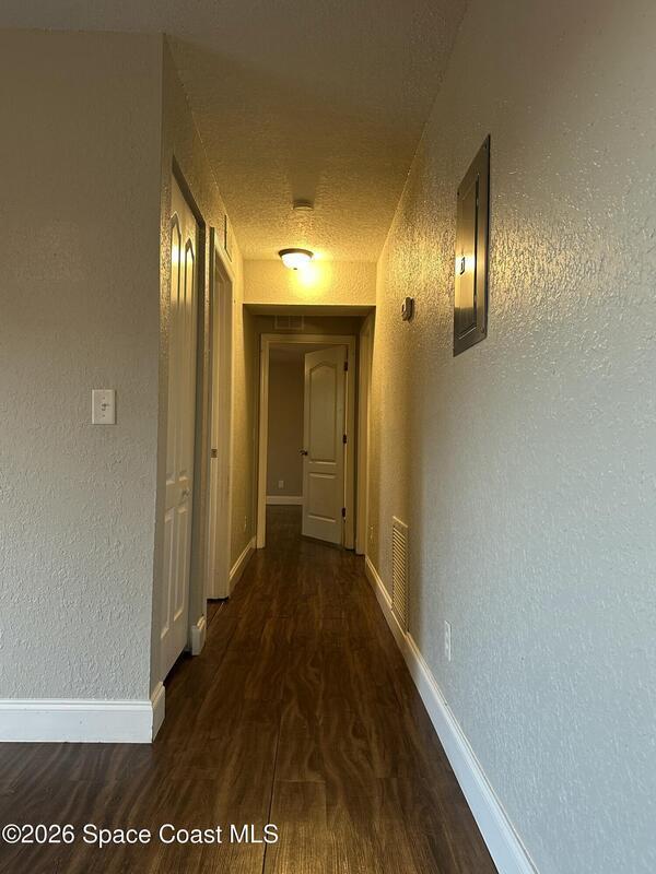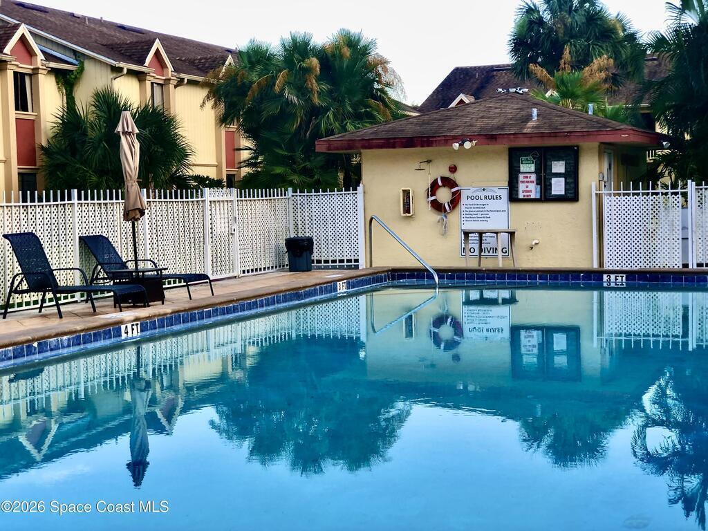 Renovated upstairs 2 bedroom 2 full bath now available in NE Palm Bay. Gated community with pool, bike racks and barbecues. Private balcony off of your 15 x 15 living room. Second bedroom is across the hall from the 2nd full bathroom. Large main bedroom (nearly the size of the living room) with 2 closets (one walk in) and attached bath with dual sinks. Washer and Dryer (courtesy use) included. Put your application in today! No pets.