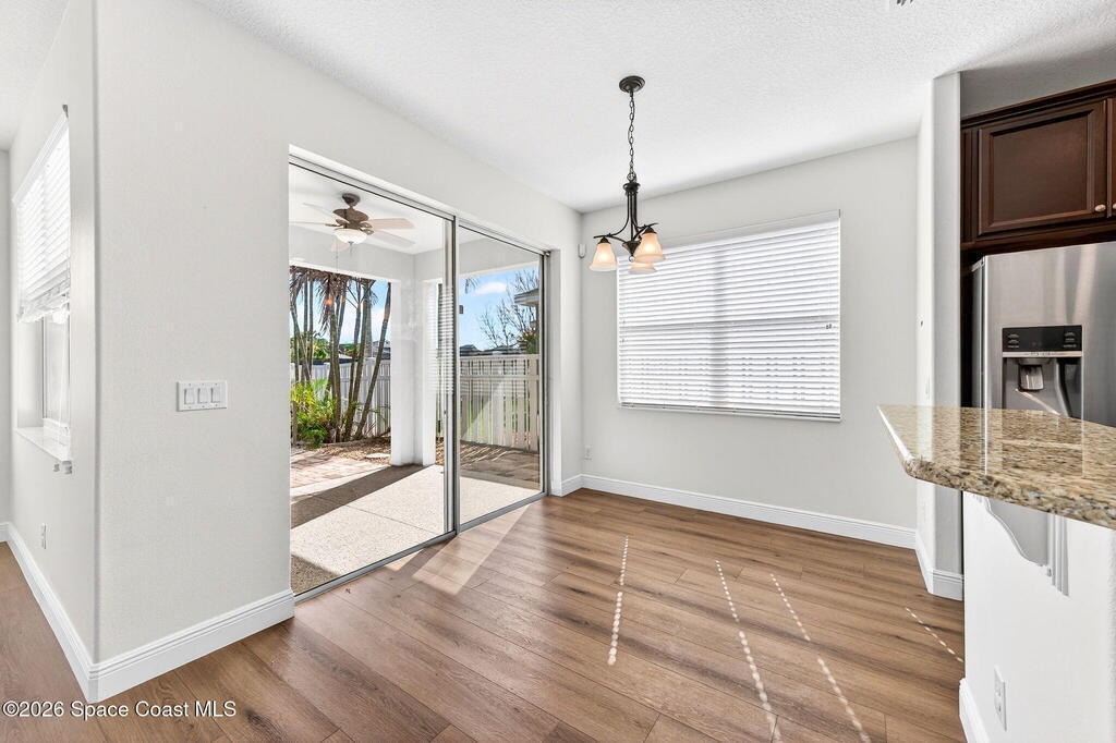 Recently refreshed and move-in ready, this beautifully maintained home is located in Strom Park, one of Viera's most sought after master-planned communities, offering a perfect blend of comfort, convenience, and Florida lifestyle.Recent Updates Include: Exterior freshly painted (2026) New carpet in guest bedrooms (2026) New range installed (2024)Inside, the home features a bright open-concept layout with spacious living and dining areas designed for both everyday living and entertaining. The kitchen is equipped with granite countertops, stainless steel appliances, rich wood cabinetry, and a breakfast bar overlooking the main living space.The primary suite provides a comfortable retreat with a large walk-in closet and well-appointed ensuite bath, while additional bedrooms offer flexible space for guests, family members, or a home office.Step outside to a large extended paver patio overlooking a landscaped backyard with mature palms, creating a private and peaceful outdoor