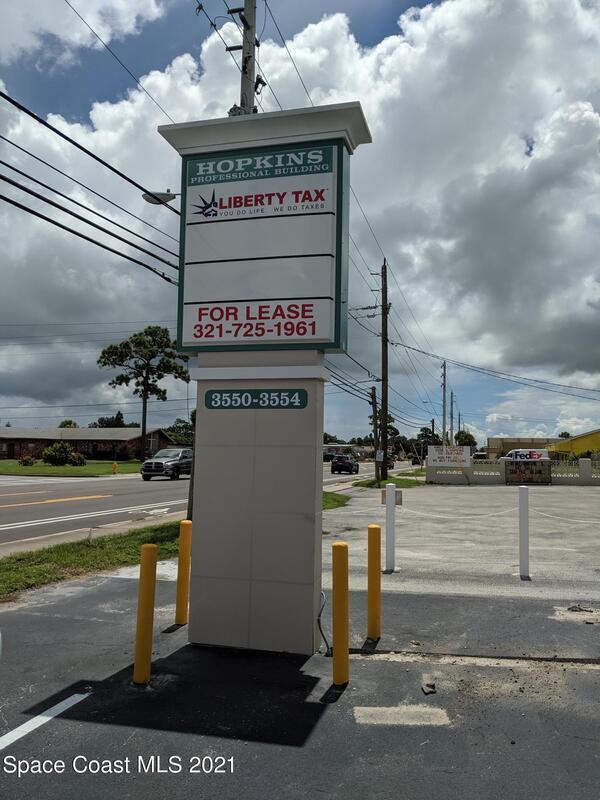 Professional office/retail space available for lease at the Hopkins Professional Building located at 3550-3556 S. Hopkins Avenue in Titusville. Unit 3550 offers approximately 1, 215 SF of newly renovated space with ample parking directly in front of the unit and additional parking along the roadway. Conveniently located approximately two miles east of I-95 near Titus Landing Lifestyle Center, Beall's Epic Theatres, and other major retail and service businesses. Lease rate $14.00 PSF/YR ($1, 417.50 per month).