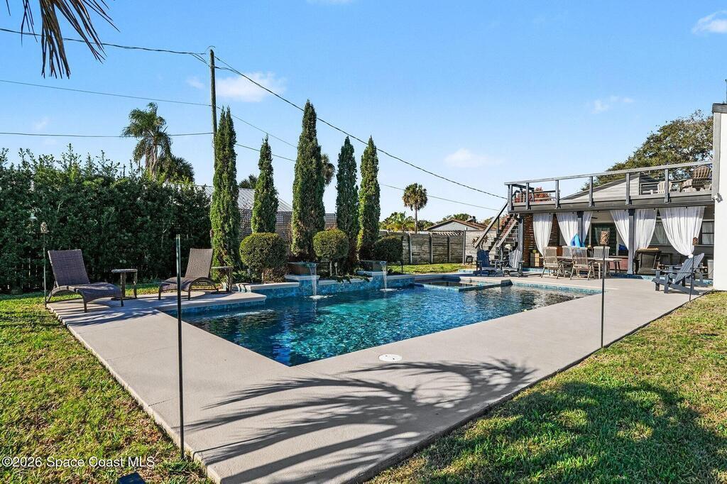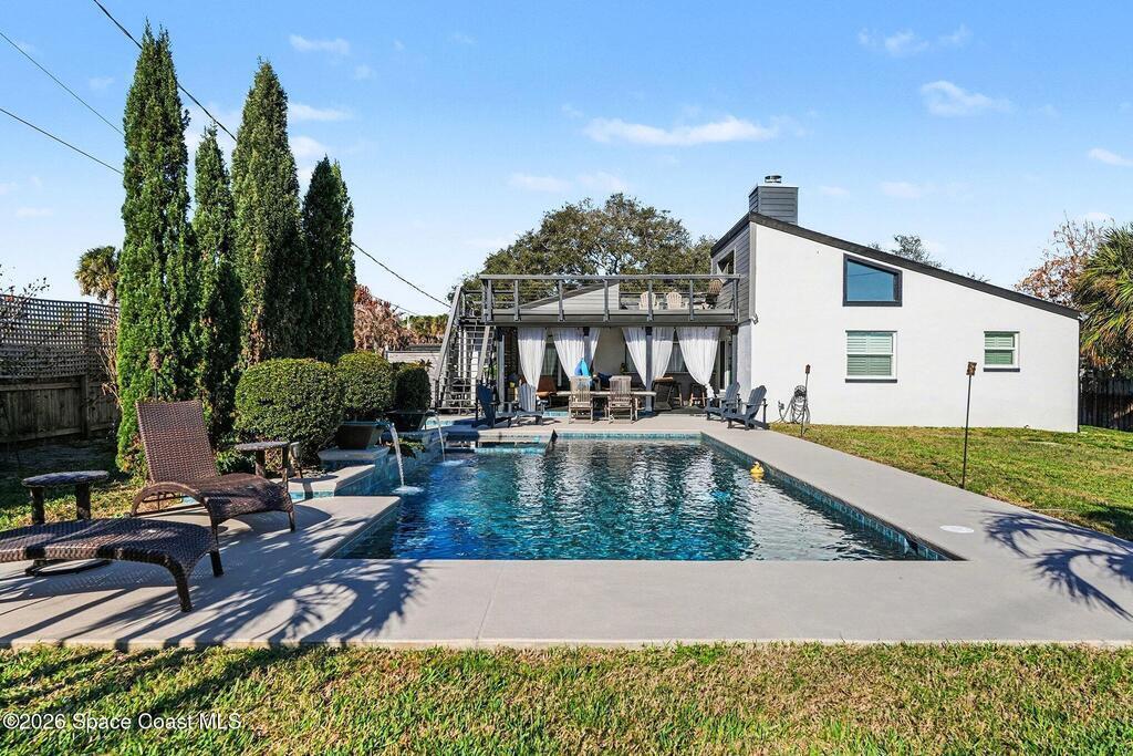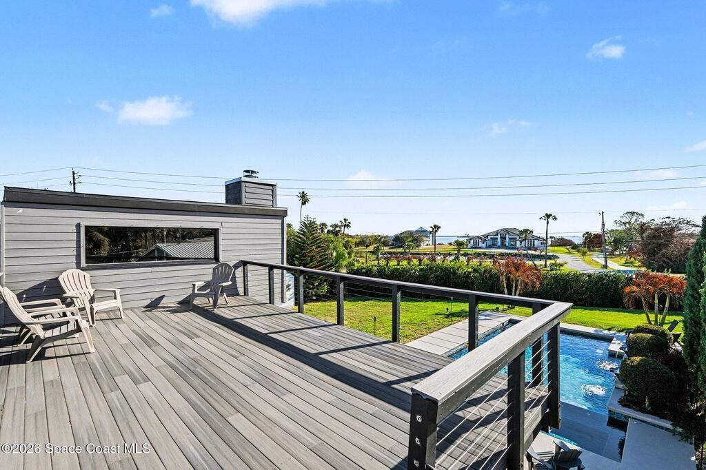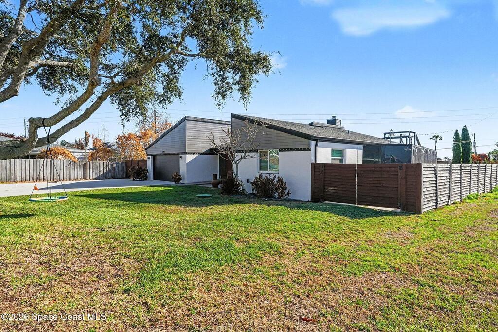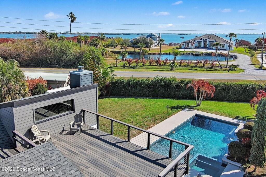 This jaw-dropping home is definitely one of a kind and is move-in ready! SEPTIC, TANKLESS WATER HEATER, A/C, PLANTATION SHUTTERS, ROOF, POOL AND PAINT ARE ALL 5 YEARS NEW! Brand new exterior paint in 2025! This home is a completely remodeled mid-century modern home with a dreamy pool and a stunning rooftop deck! This 4 bedroom, 2 bathroom home sits on .46 acre lot and boasts over 2, 000 square feet! You will have peace of mind knowing the windows and garage door are hurricane rated. Need parking for your boat or RV? There is a paved parking pad on the side of the home! Natural light flows effortlessly throughout this home and it has been meticulously maintained! Peaceful area, paved road, close to shopping, restaurants, entertainment, fishing, Cocoa beach, Kennedy Space Center, Port Canaveral, Hospitals, Doctors and a quick easy commute to Orlando. Don't miss out on this one! All information listed in the MLS is intended to be accurate but not guaranteed by Broker/Agent/MLS.