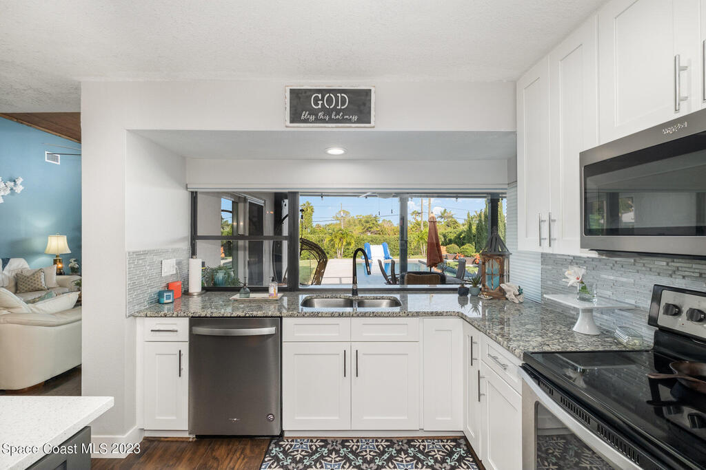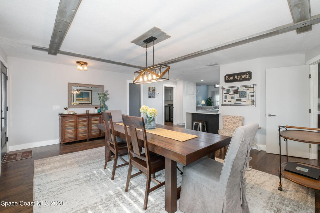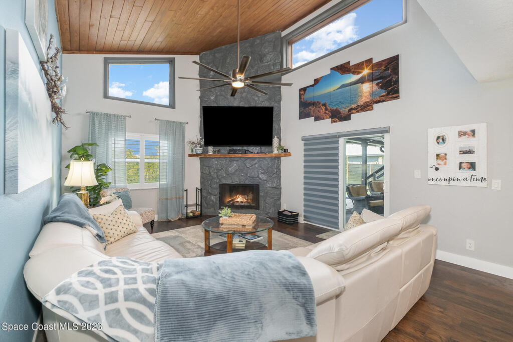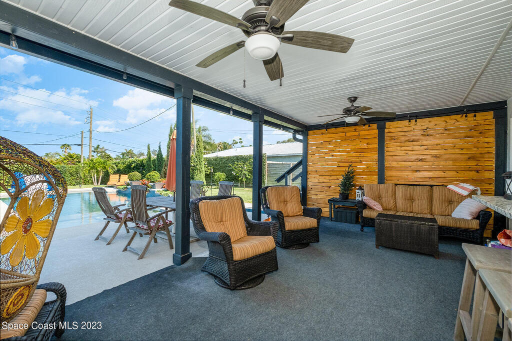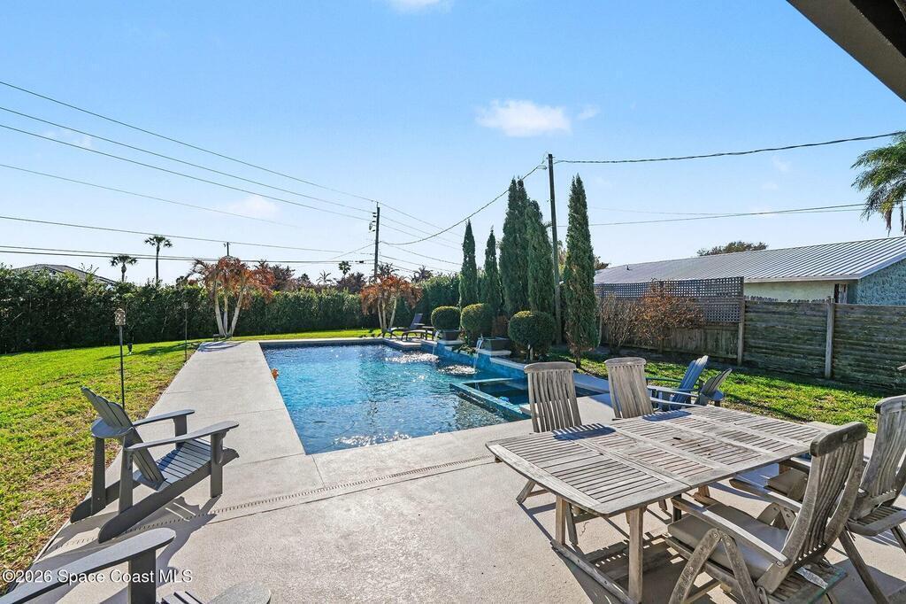 This jaw-dropping home is definitely one of a kind and is move-in ready! SEPTIC, TANKLESS WATER HEATER, A/C, PLANTATION SHUTTERS, ROOF, POOL AND PAINT ARE ALL 5 YEARS NEW! Brand new exterior paint in 2025! This home is a completely remodeled mid-century modern home with a dreamy pool and a stunning rooftop deck! This 4 bedroom, 2 bathroom home sits on .46 acre lot and boasts over 2, 000 square feet! You will have peace of mind knowing the windows and garage door are hurricane rated. Need parking for your boat or RV? There is a paved parking pad on the side of the home! Natural light flows effortlessly throughout this home and it has been meticulously maintained! Peaceful area, paved road, close to shopping, restaurants, entertainment, fishing, Cocoa beach, Kennedy Space Center, Port Canaveral, Hospitals, Doctors and a quick easy commute to Orlando. Don't miss out on this one! All information listed in the MLS is intended to be accurate but not guaranteed by Broker/Agent/MLS.
