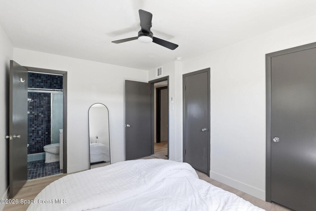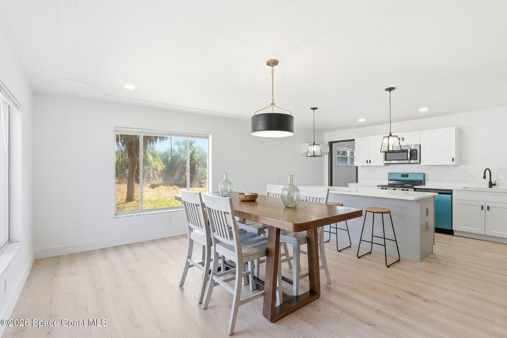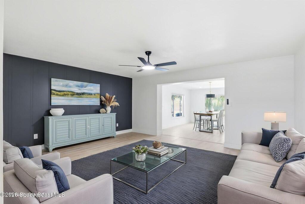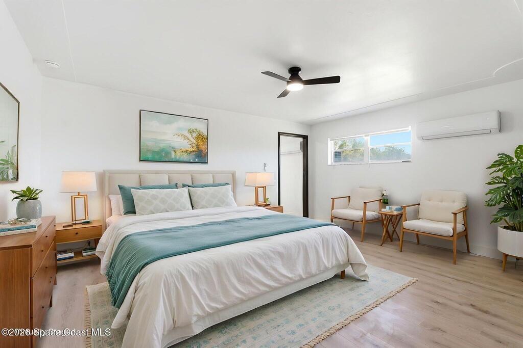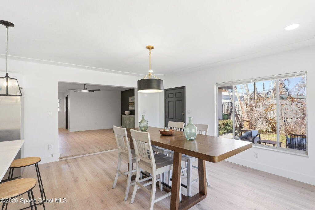 NO CAST IRON! Rare opportunity to own a fully remodeled beachside home under $500K just minutes from the ocean! The open floor plan features new luxury vinyl plank flooring, designer lighting, and a striking accent wall. The modern kitchen includes quartz countertops, white shaker cabinets, a large island, and new stainless appliances. Updated bathrooms feature sleek vanities and LED mirrors, and a minisplit enhances comfort in the primary suite. Enjoy a private backyard patio backing to open green space. Located just blocks from the beach, top-rated schools, restaurants, Patrick Space Force Base, and a safe/desirable Satellite Beach neighborhood.