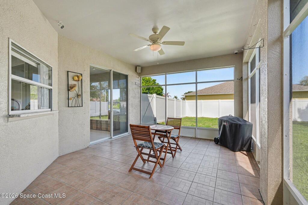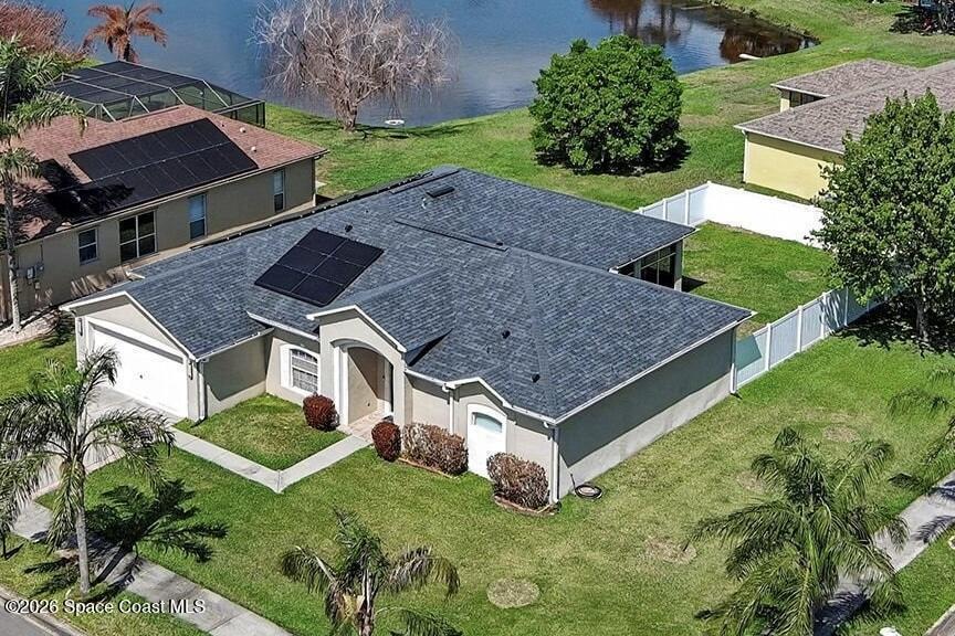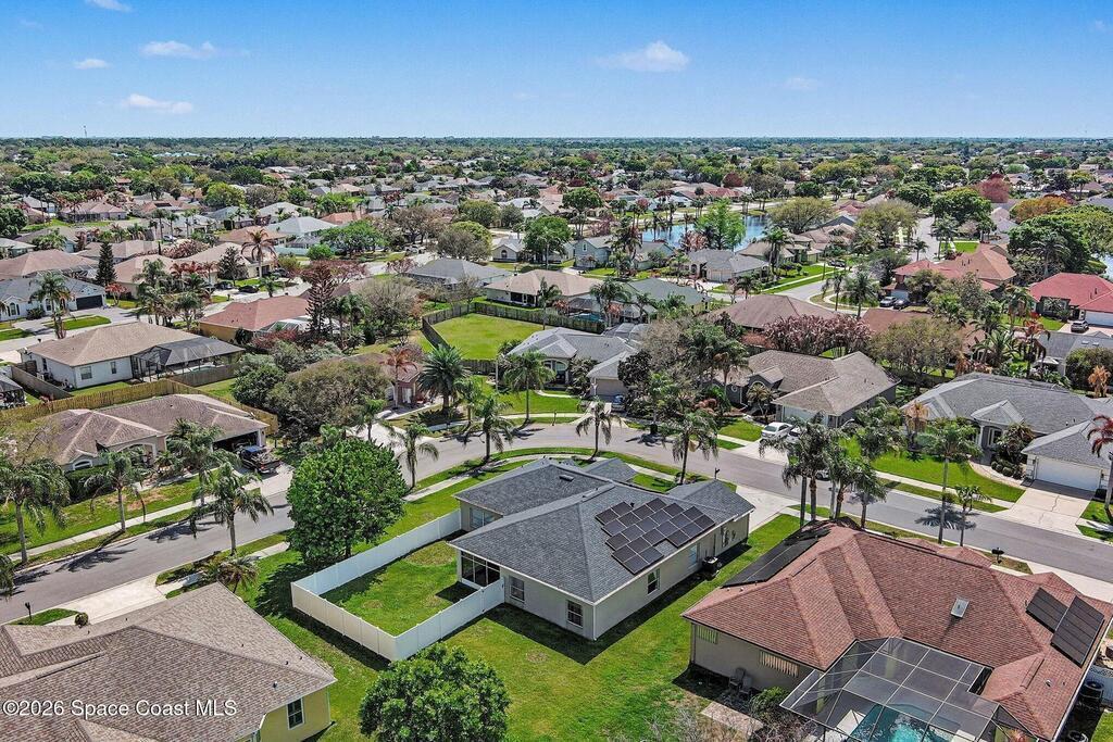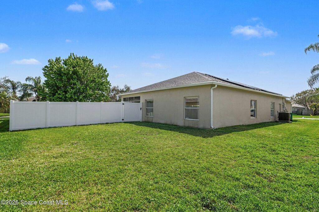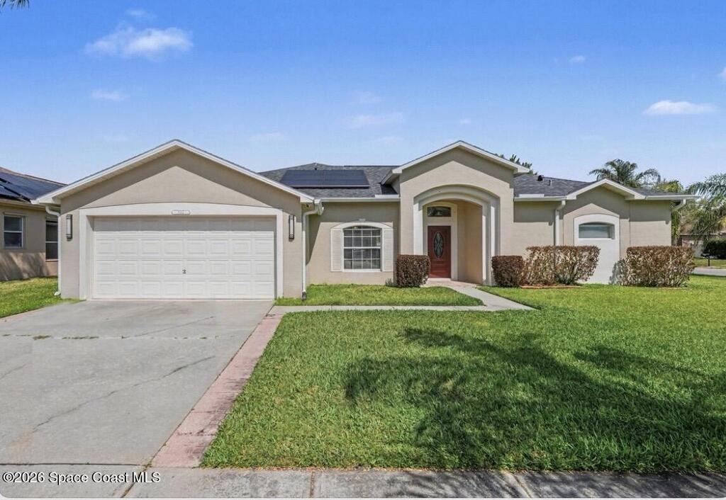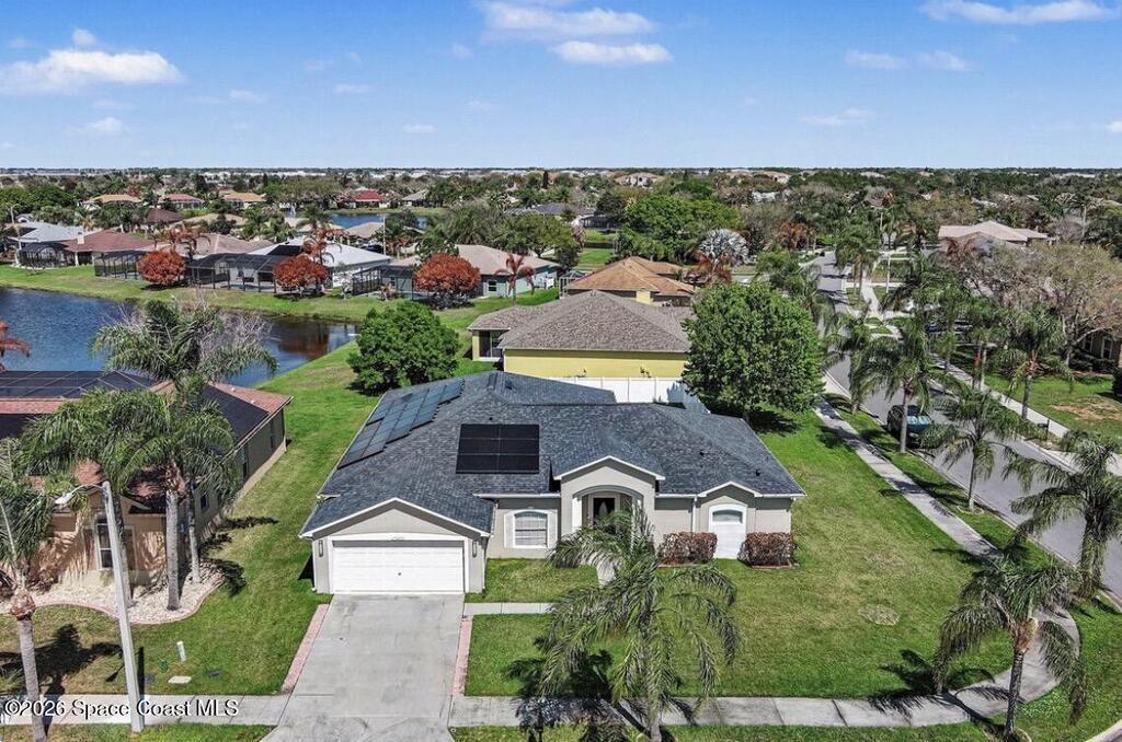Experience sustainable living in this elegant solar-powered corner-lot home in desirable Viera, where comfort meets exceptional energy efficiency- Plus the seller is offering $5, 000 toward buyer's closing cost or concessions!Featuring 3 bedrooms, 2 bathrooms, the open-concept layout showcases tile and vinyl plank flooring throughout the main living areas. Enjoy formal living and dining rooms plus a spacious family room that flows into the kitchen with granite countertops, center island, breakfast bar, and stainless-steel appliances (2022). Large primary suite featuring a walk-in closet and an ensuite bath with double sinks, upgraded cabinetry, soaking tub, and separate shower. Step outside to a partial fenced backyard, ideal for relaxing, pets or gathering. Save big with fully Paid solar panels. Additional updates include hurricane windows, roof (2020), gutters (2023), A/C (2020) and ADT alarm system. A fantastic opportunity in one of Viera's most desirable locations.